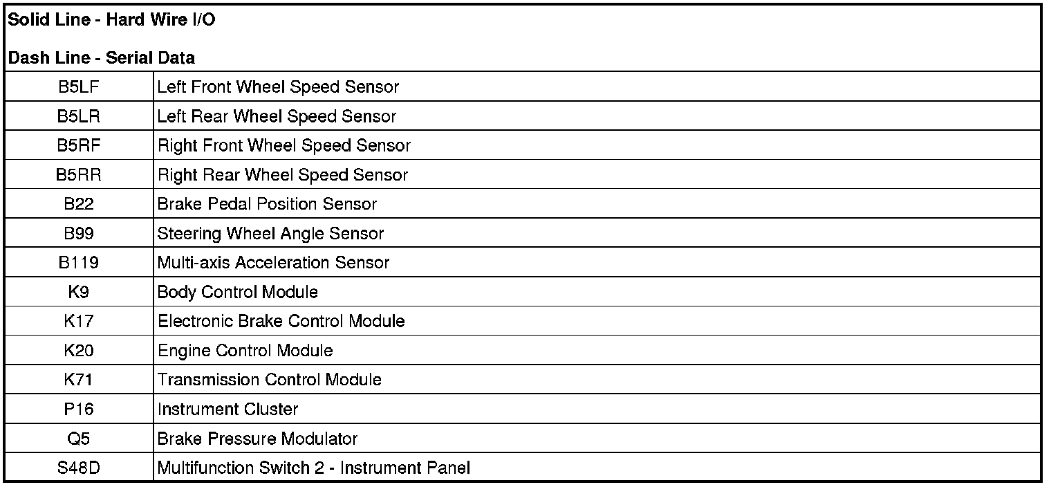 * Steering angle sensor - The electronic brake control module receives serial data message inputs from the steering angle sensor. The steering angle sensor signal is used to calculate the desired yaw rate.