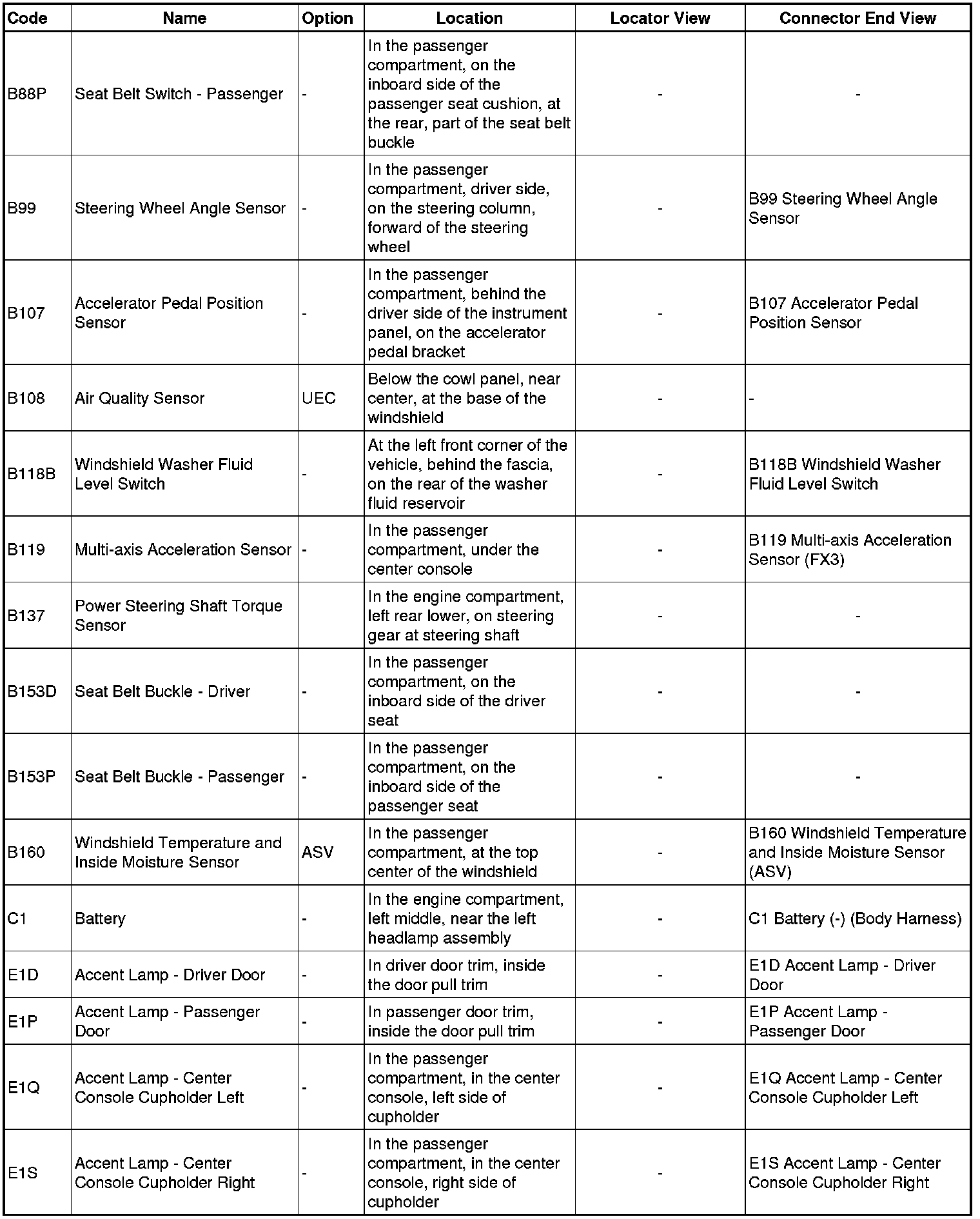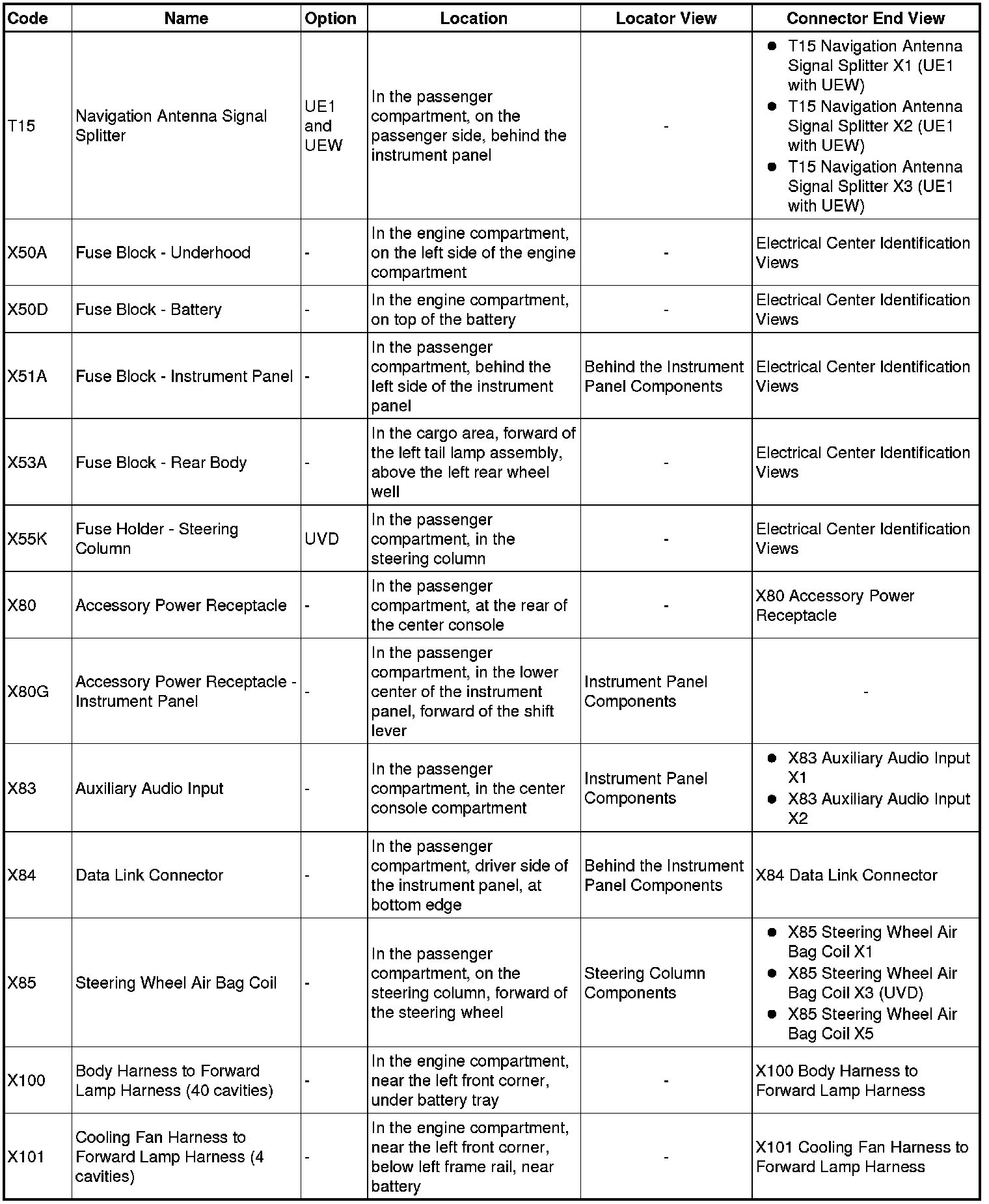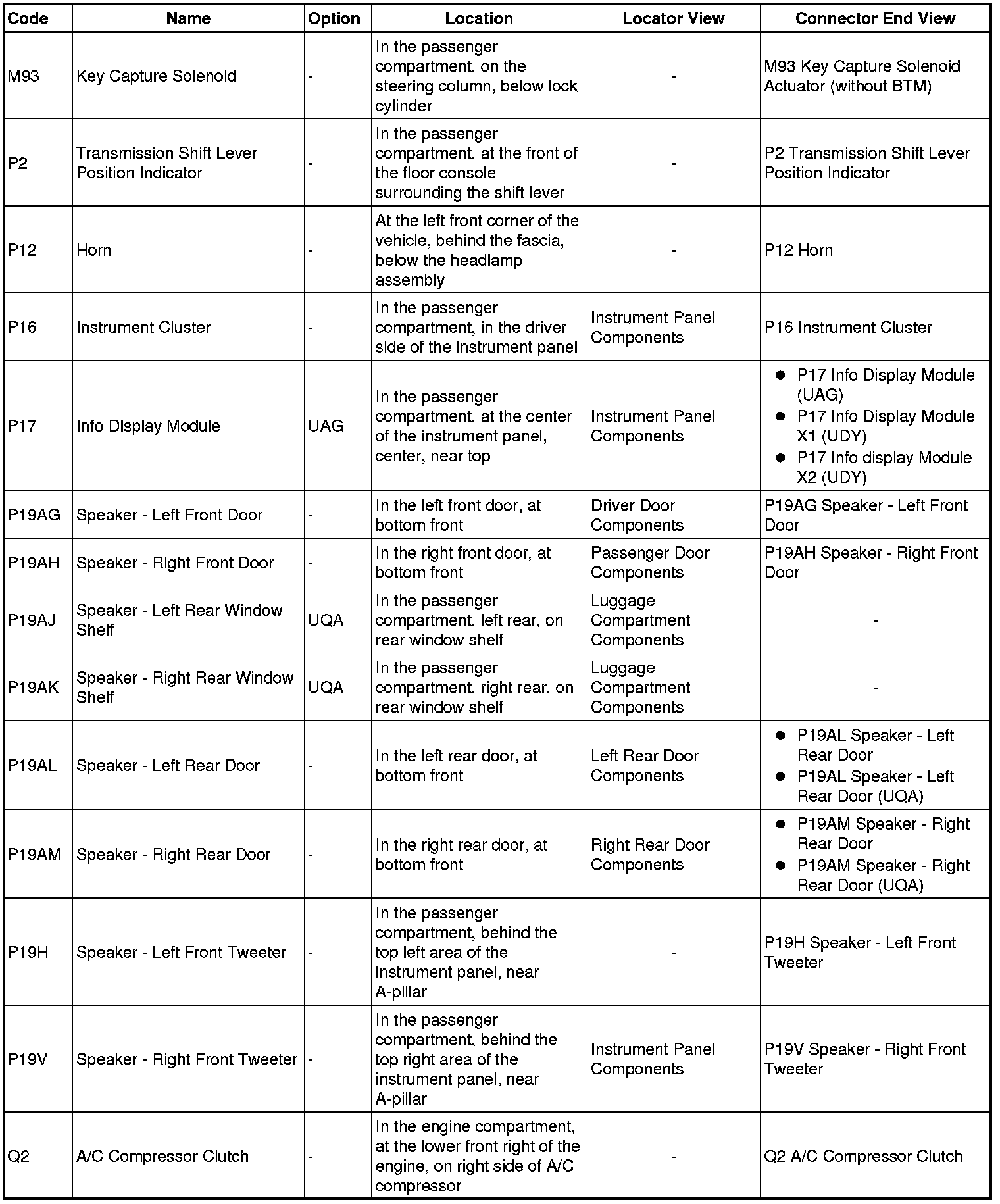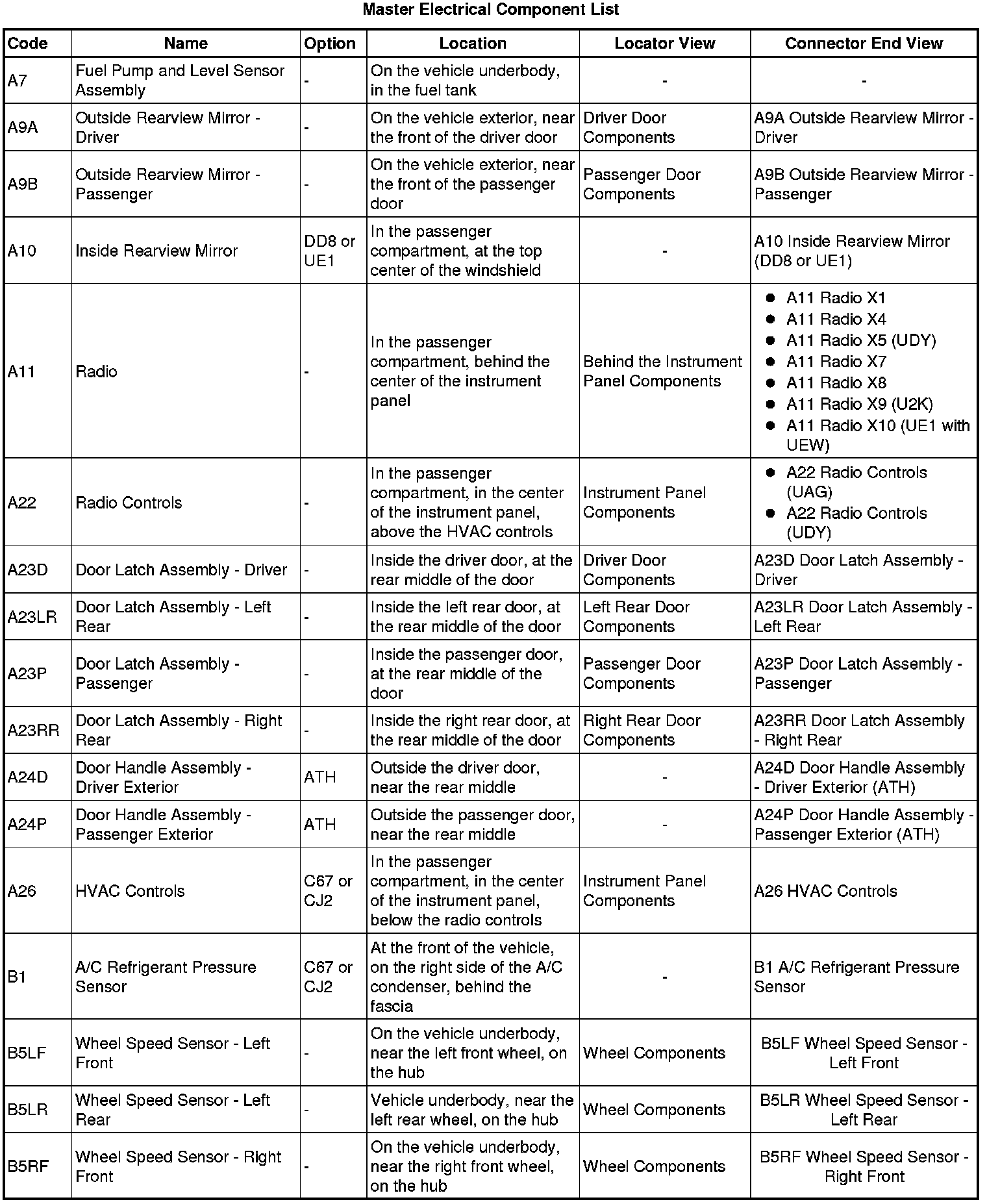 Master Electrical Component List