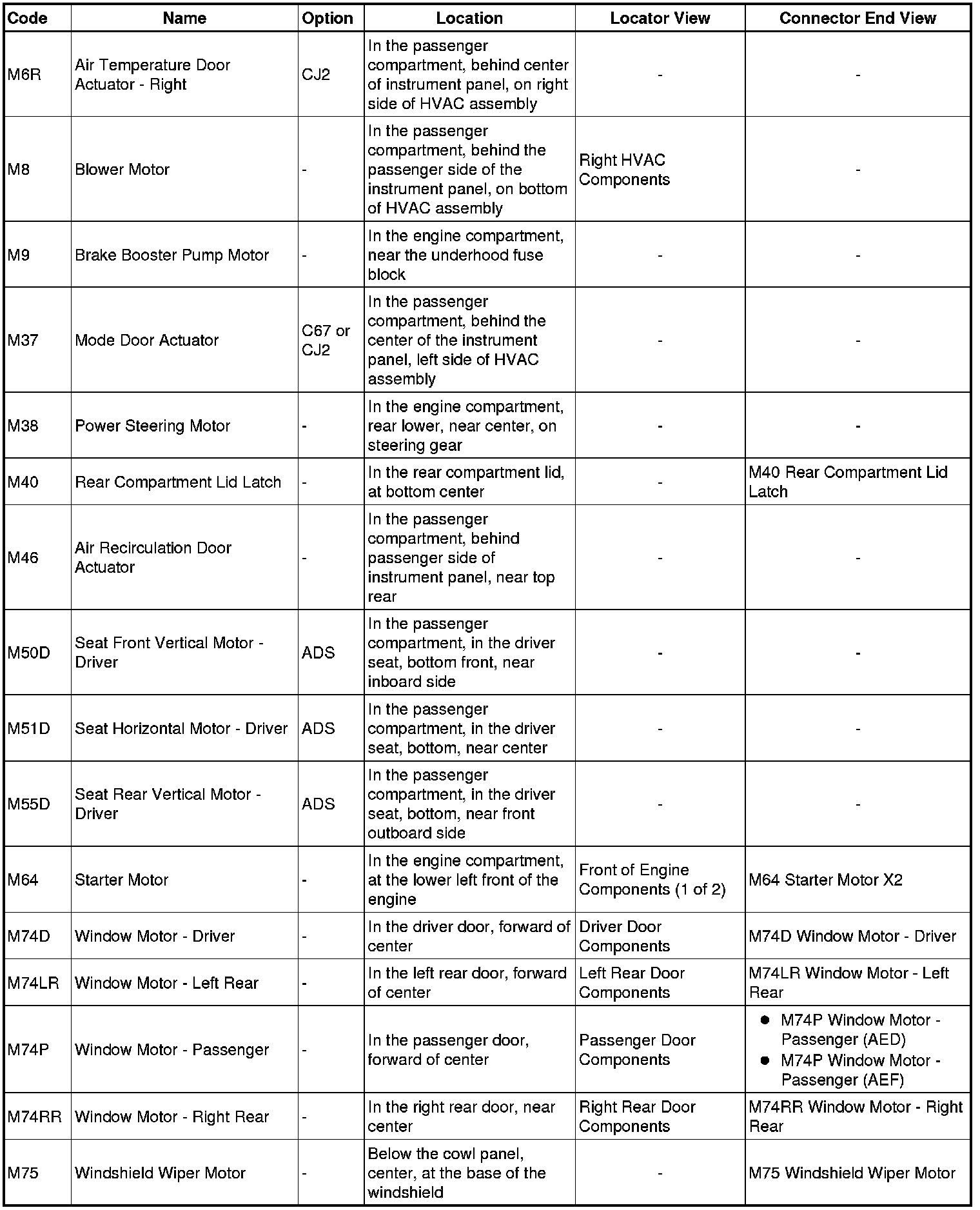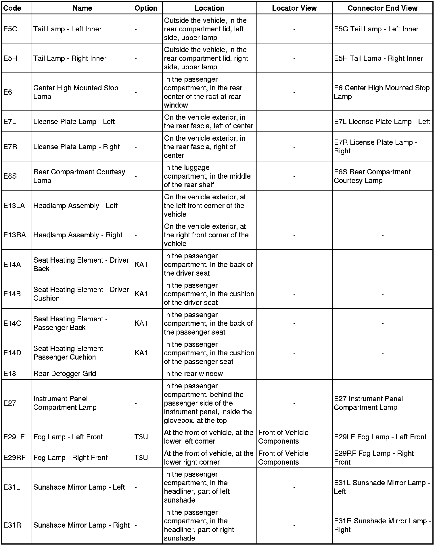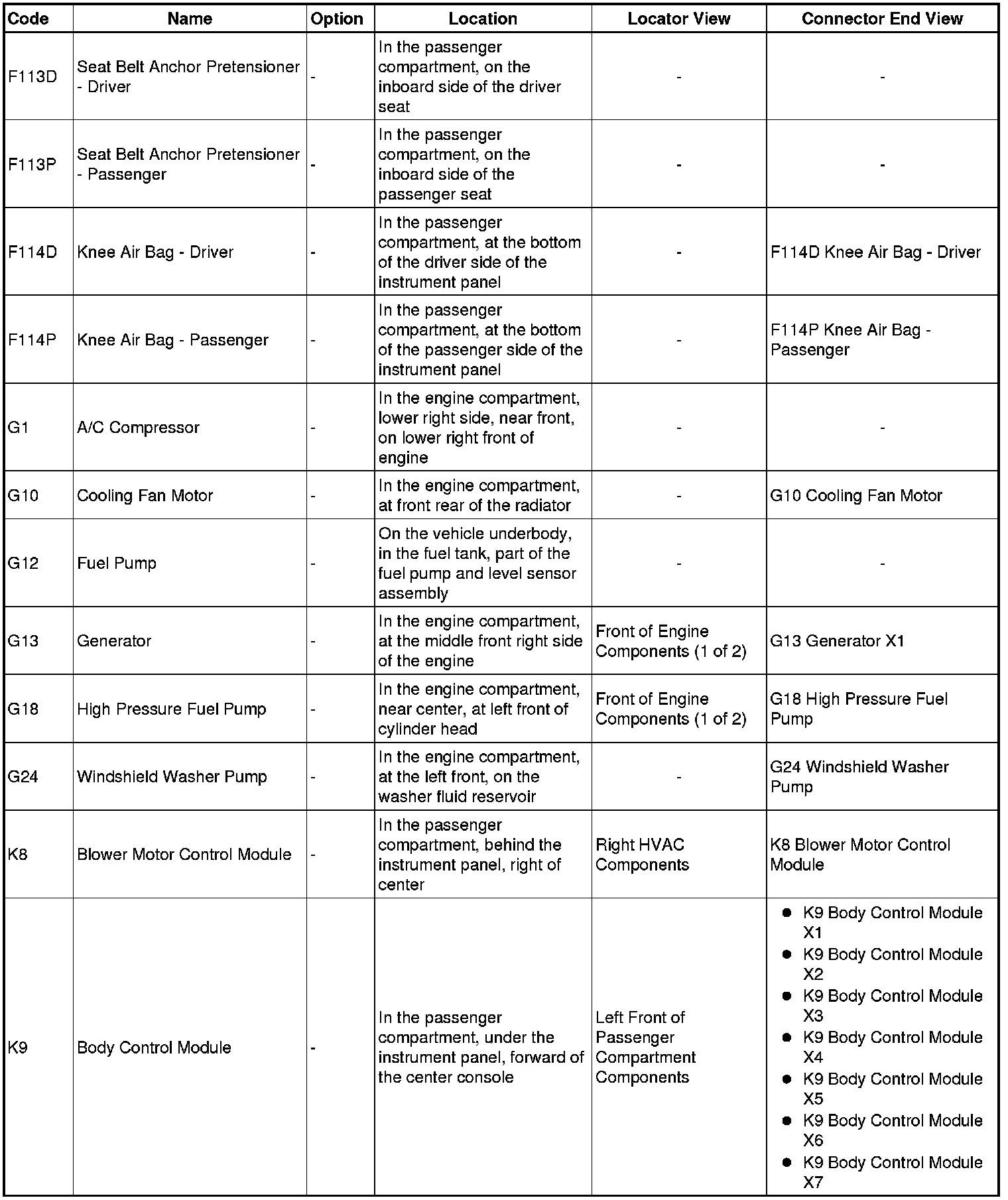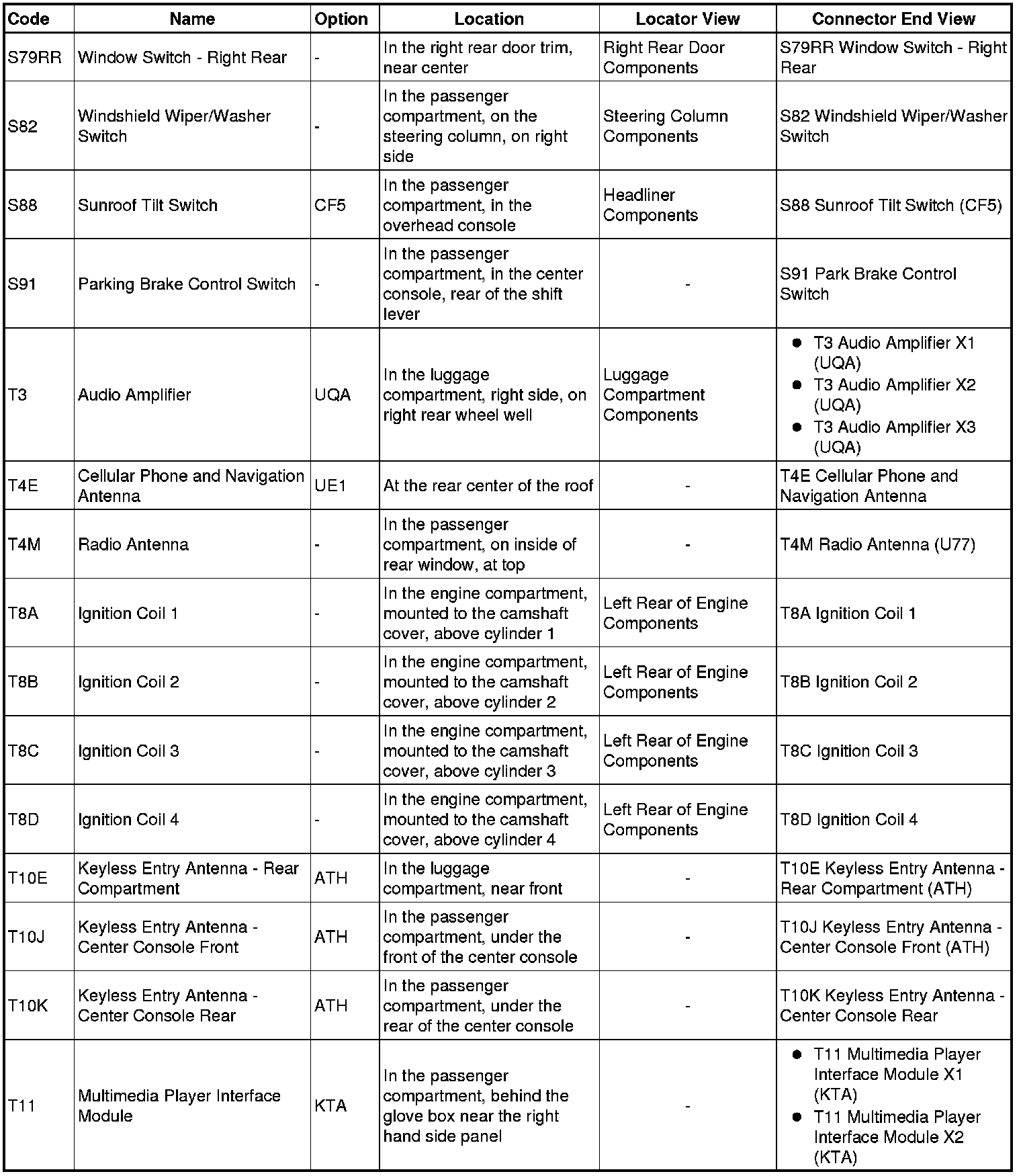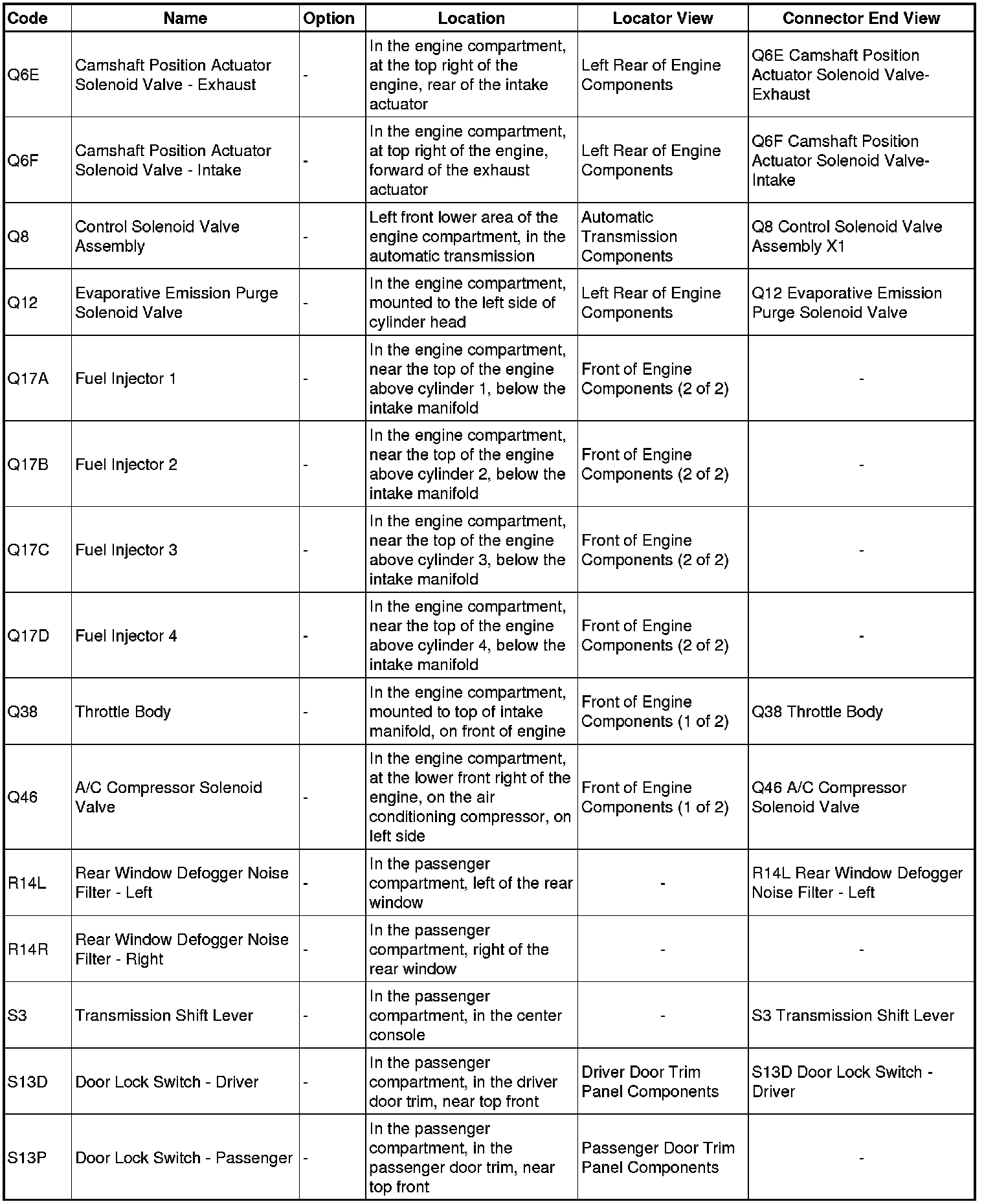 Master Electrical Component List