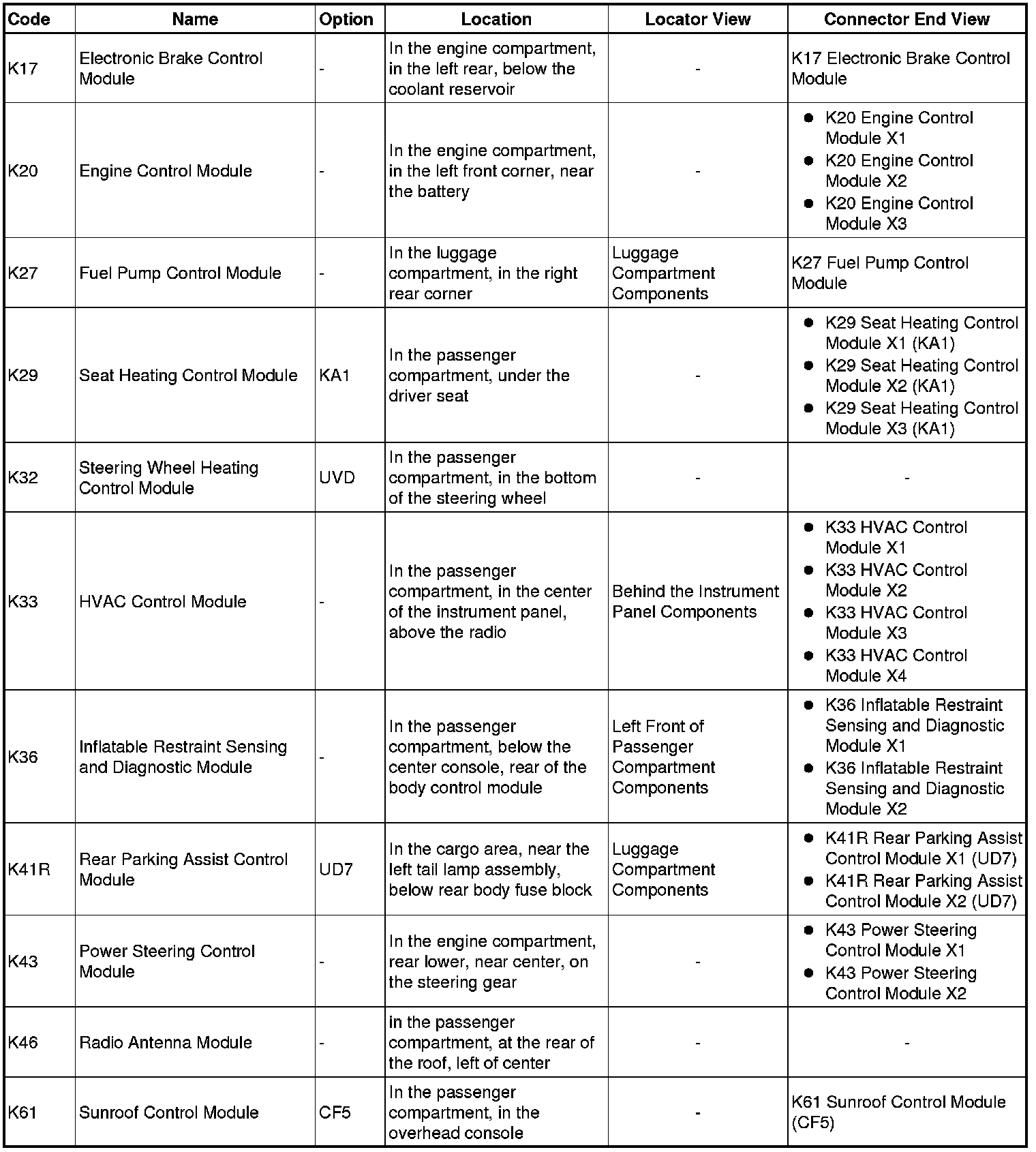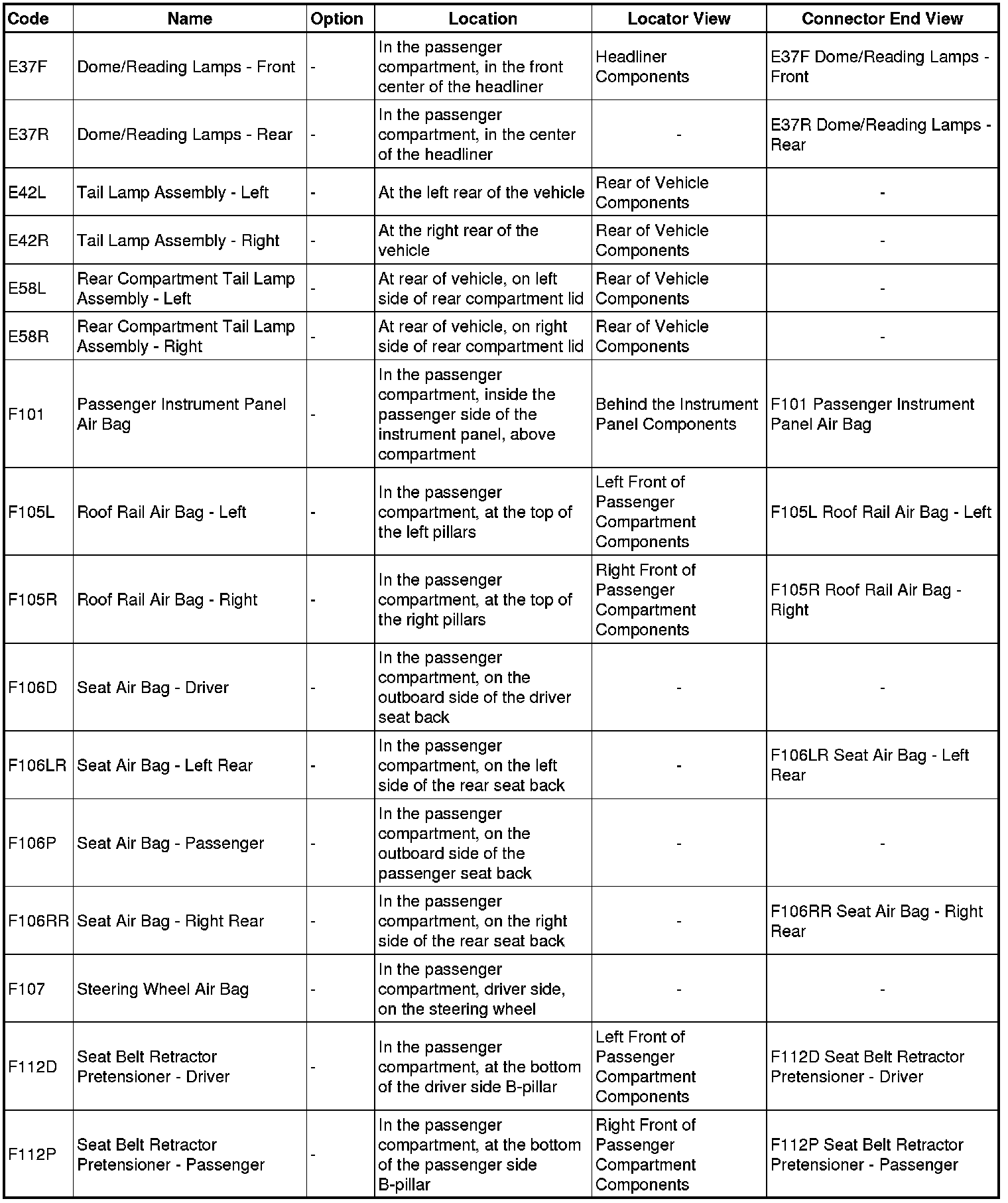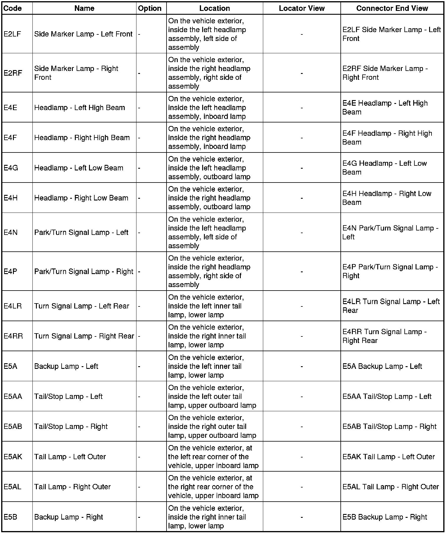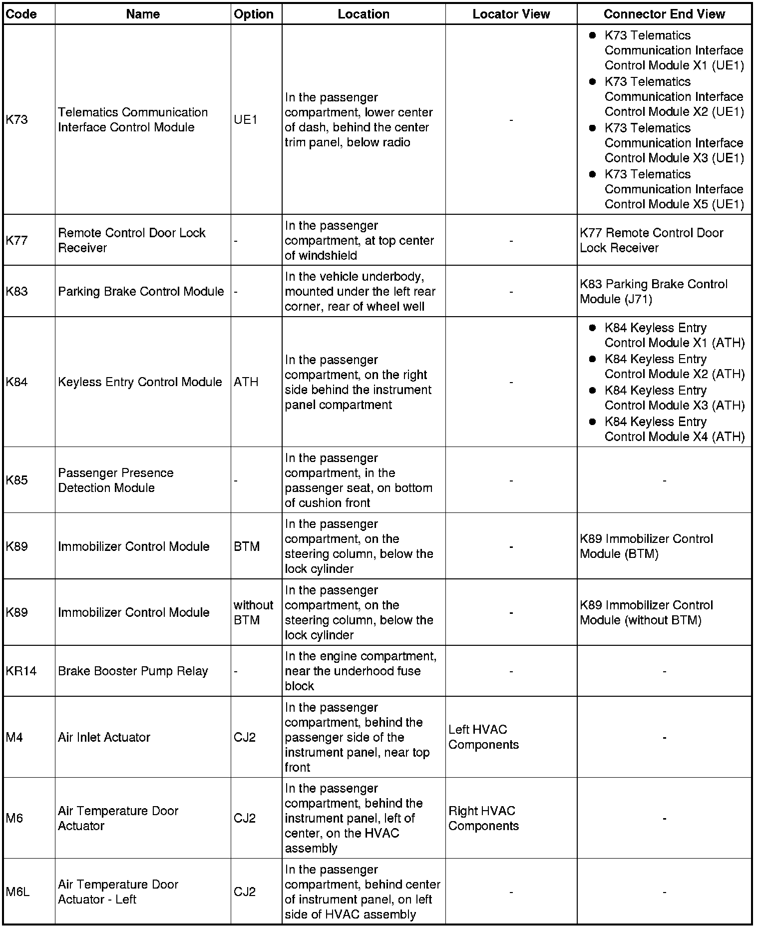 Master Electrical Component List
