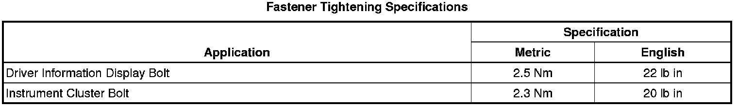 Instrument Panel, Gauges and Warning Indicators: Specifications