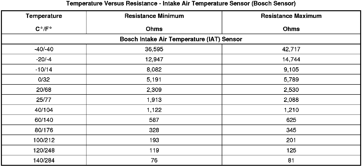 Temperature Versus Resistance - Intake Air Temperature Sensor (Bosch Sensor)