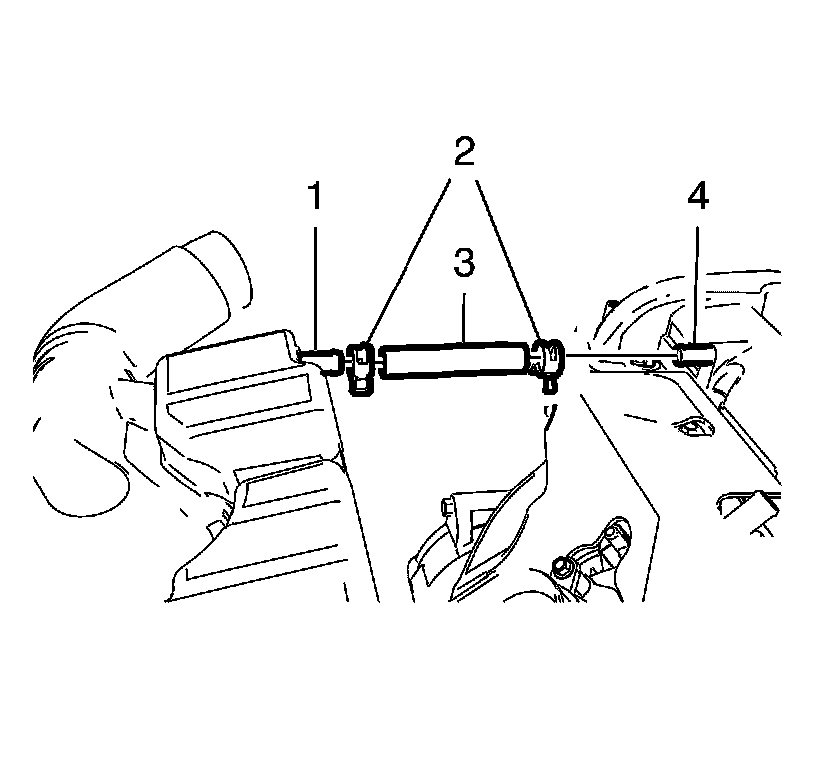 1. Install the positive crankcase ventilation hose (3) to the camshaft cover (4) and the air cleaner outlet duct - rear (1).