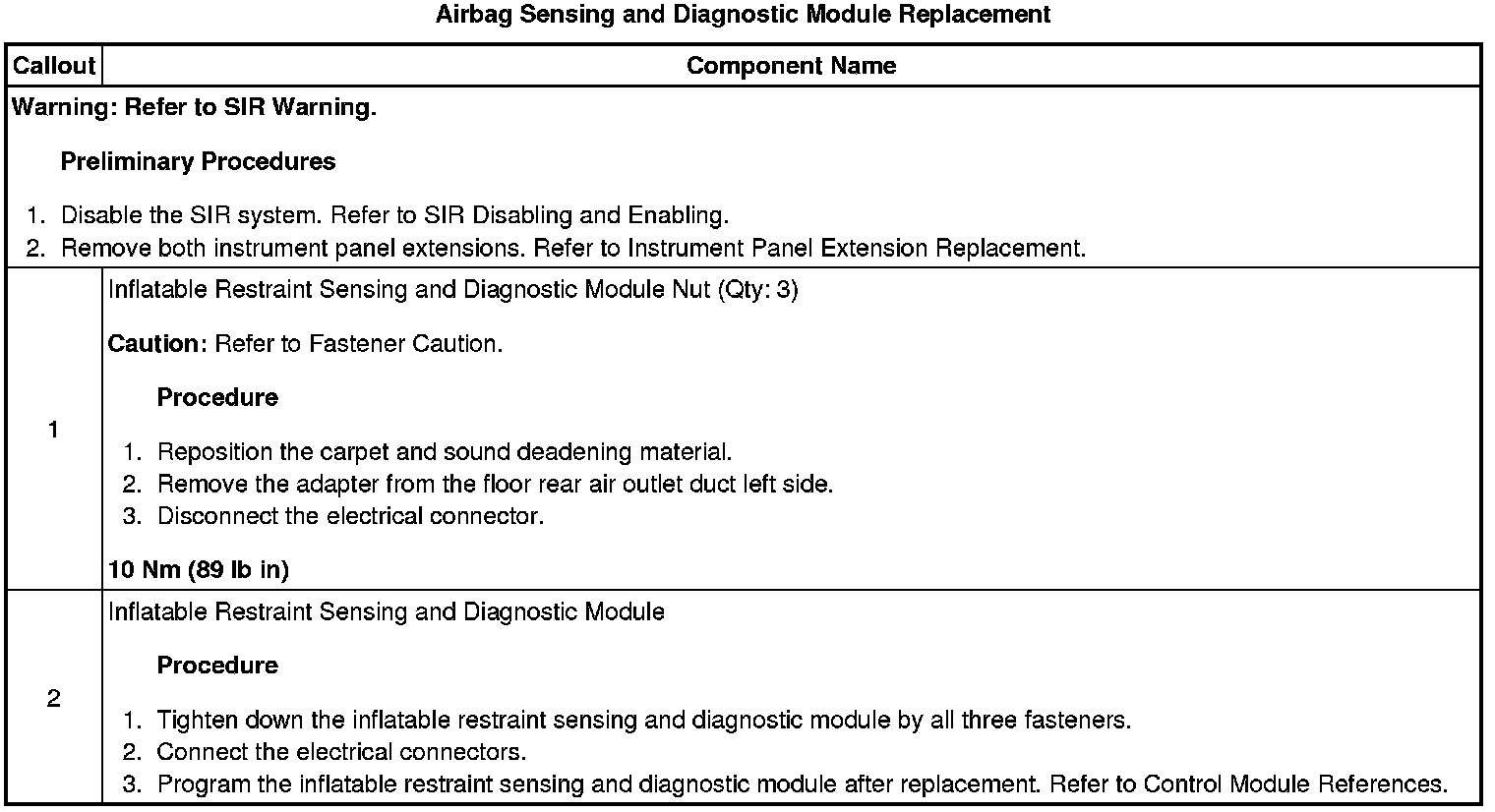 Airbag Sensing and Diagnostic Module Replacement