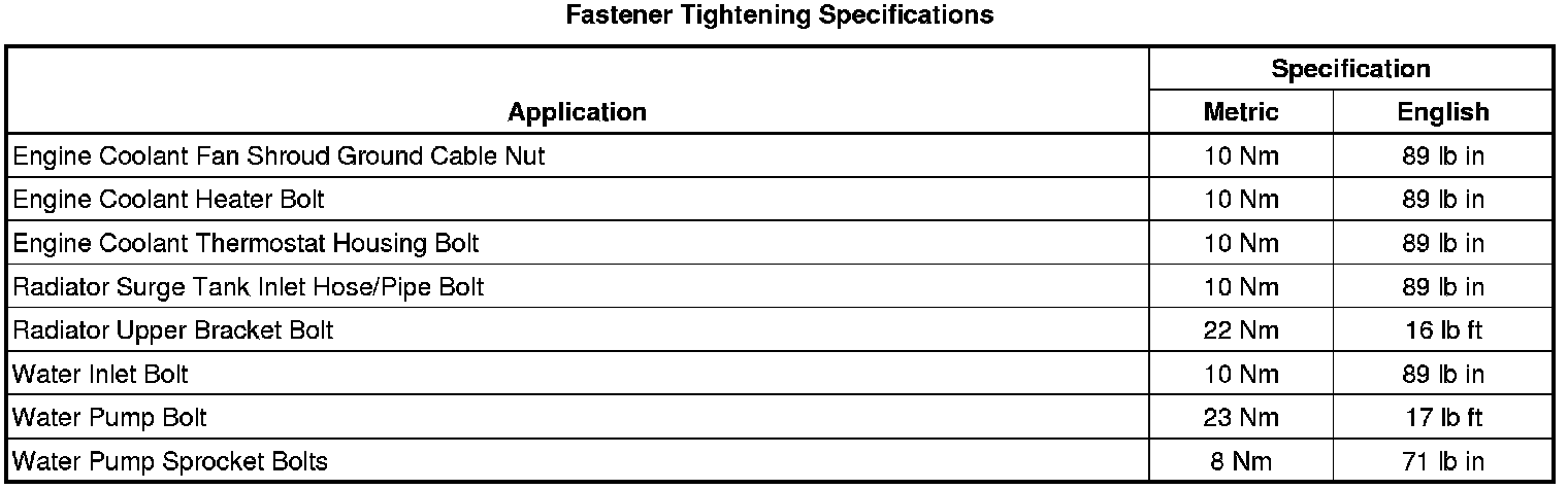 Fastener Tightening Specifications