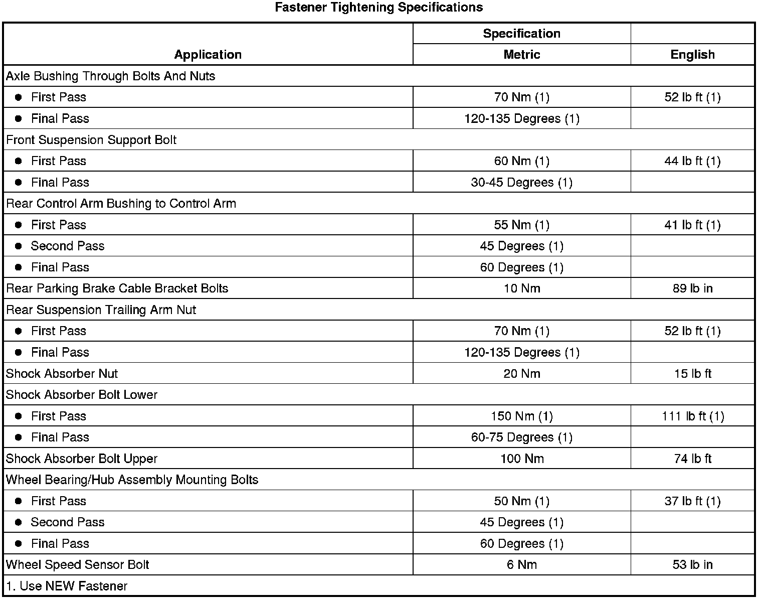 Fastener Tightening Specifications