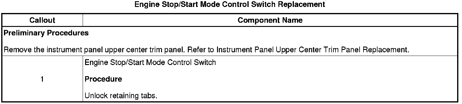 Engine Stop/Start Mode Control Switch Replacement