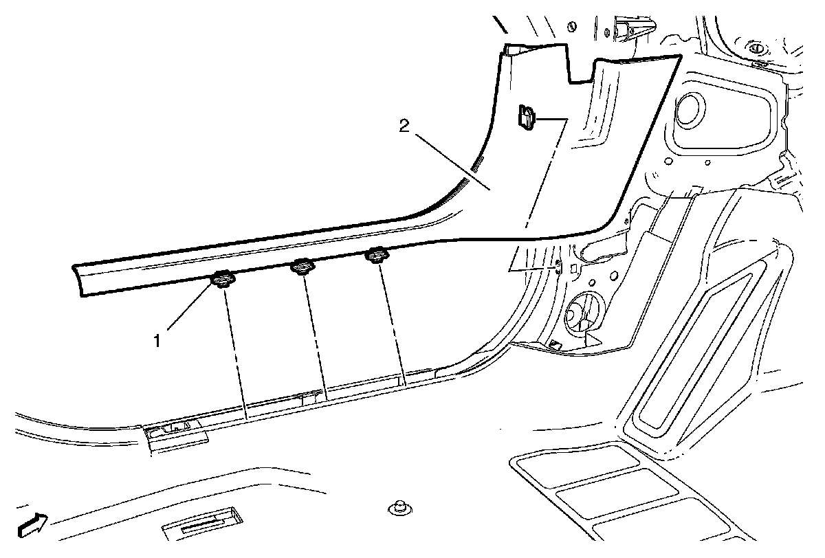 7. Install the front side door sill trim plate. Refer to Front Side Door Sill Trim Plate Replacement in SI.