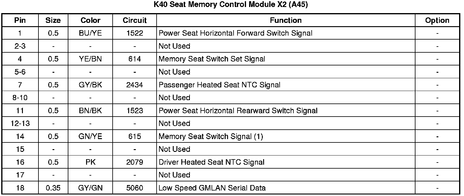 Seat Memory Control Module X2 (A45)