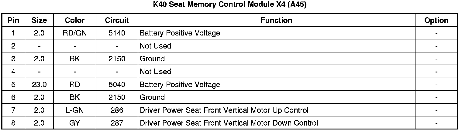 K40 Seat Memory