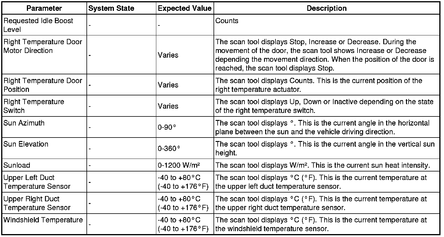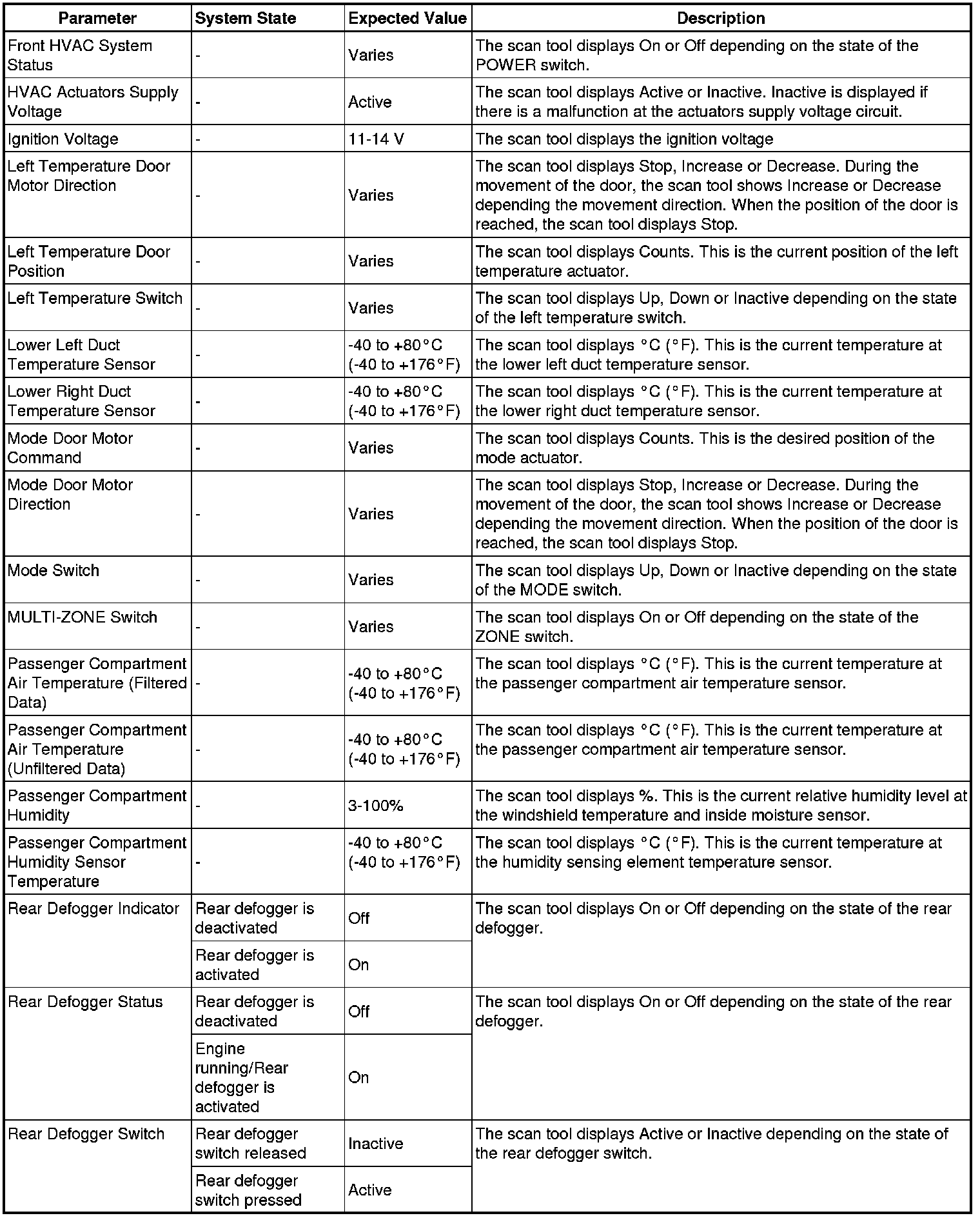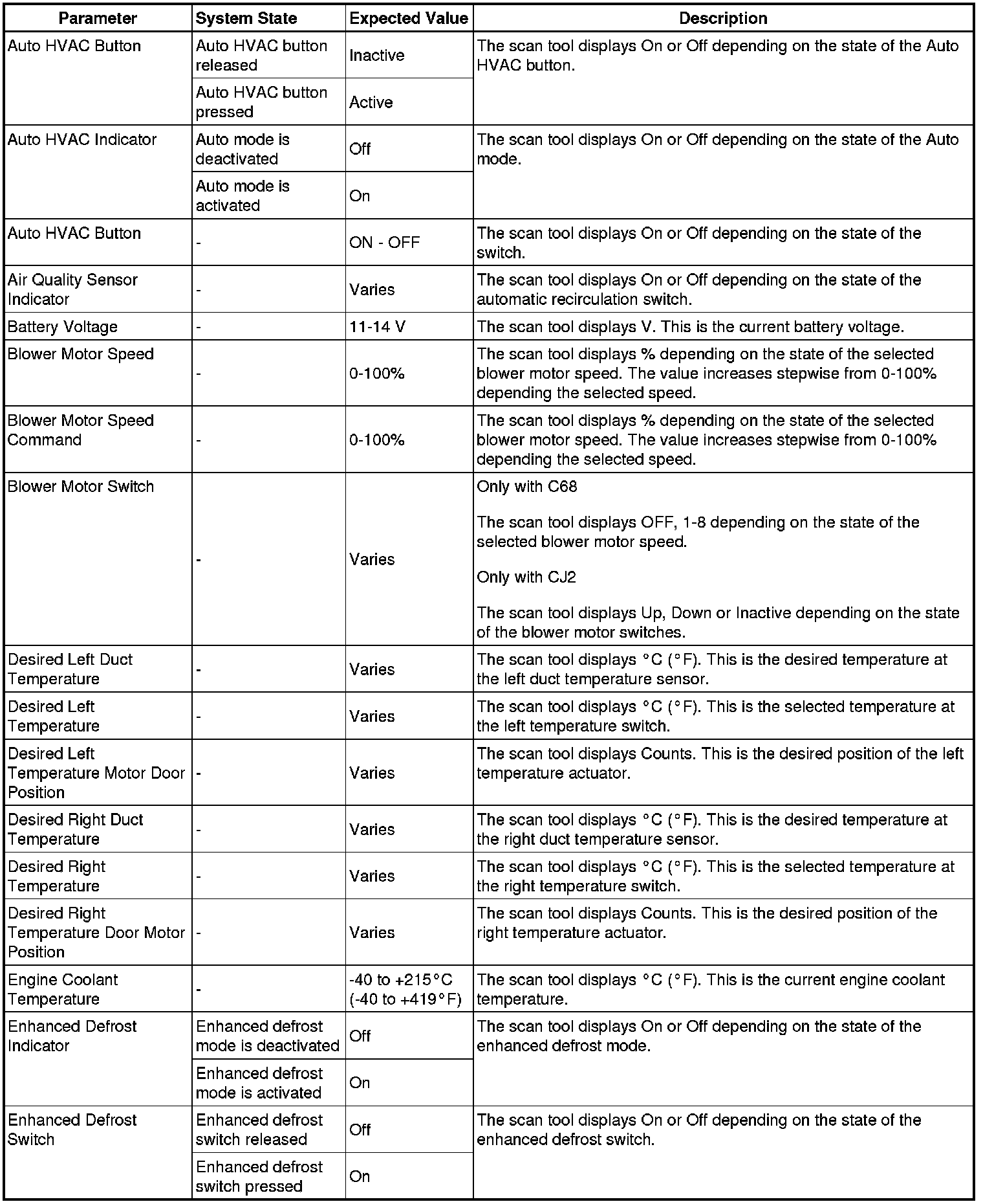 Heating, Ventilation and Air Conditioning Control Module Scan Tool Information