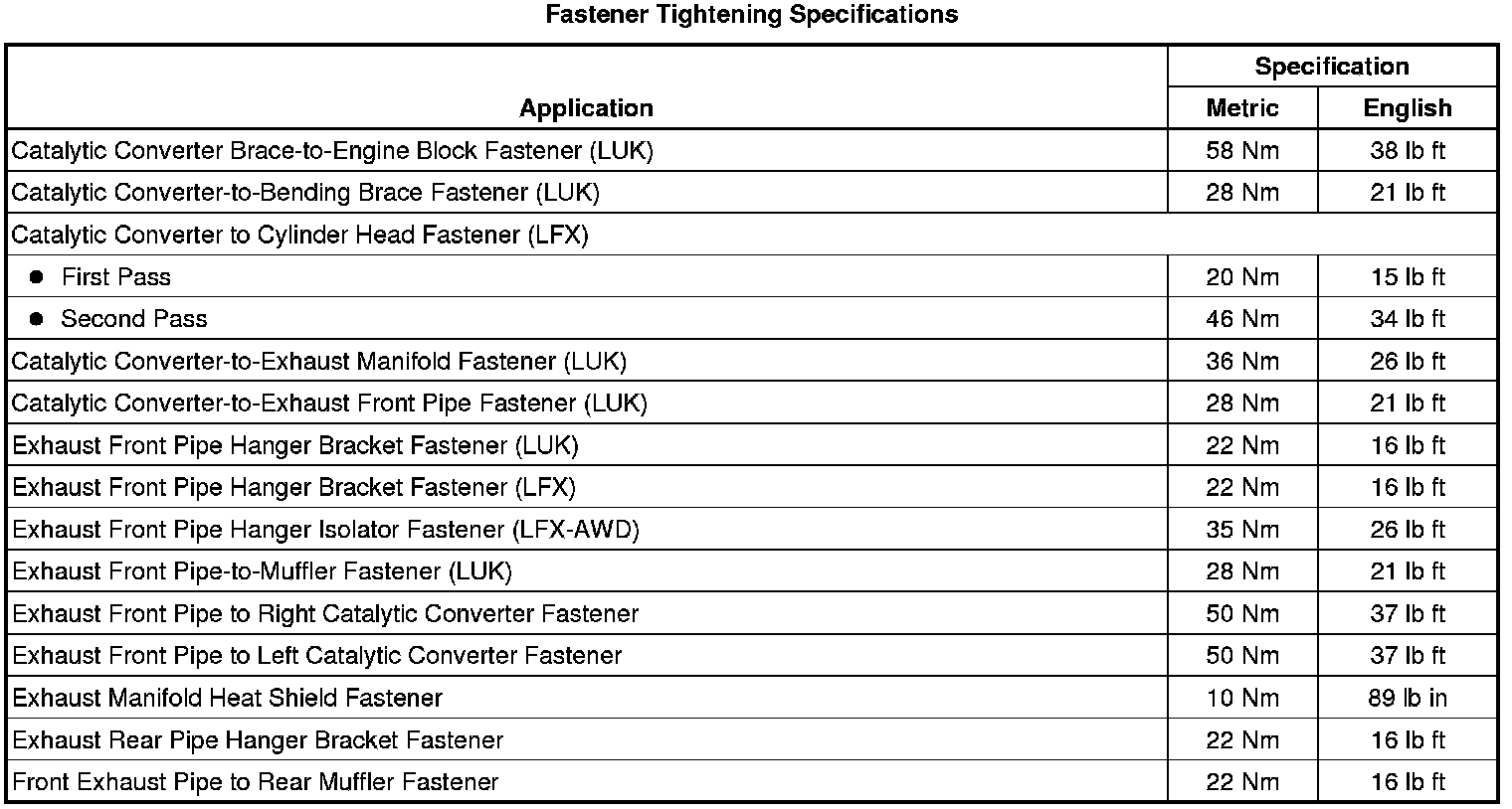 Fastener Tightening Specifications