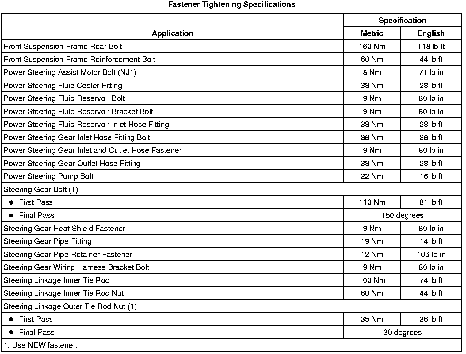 Fastener Tightening Specifications
