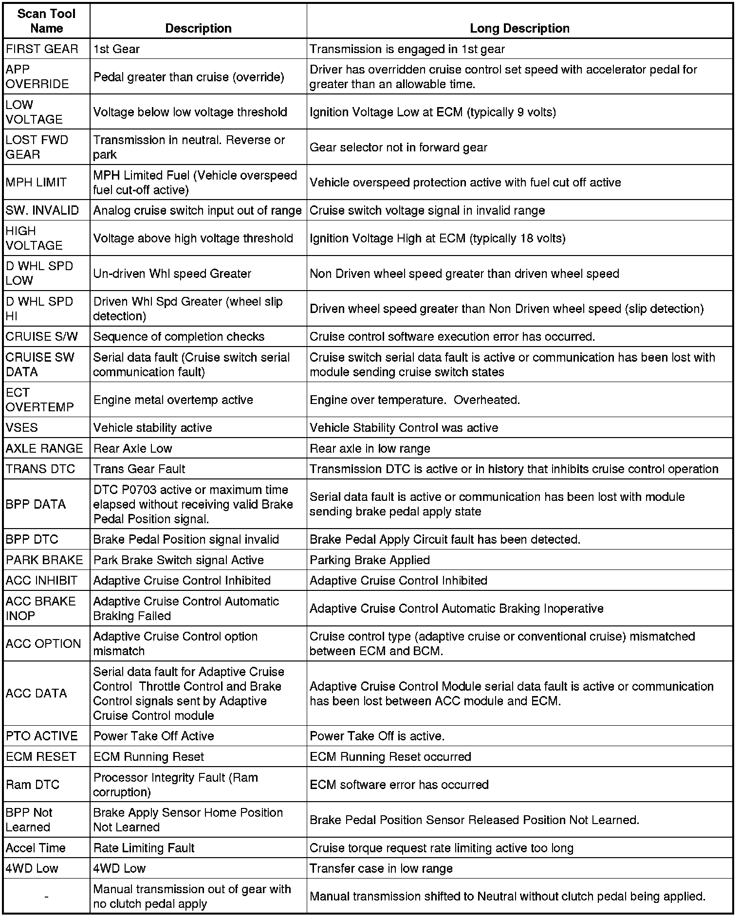 Cruise Control Inhibit Reasons