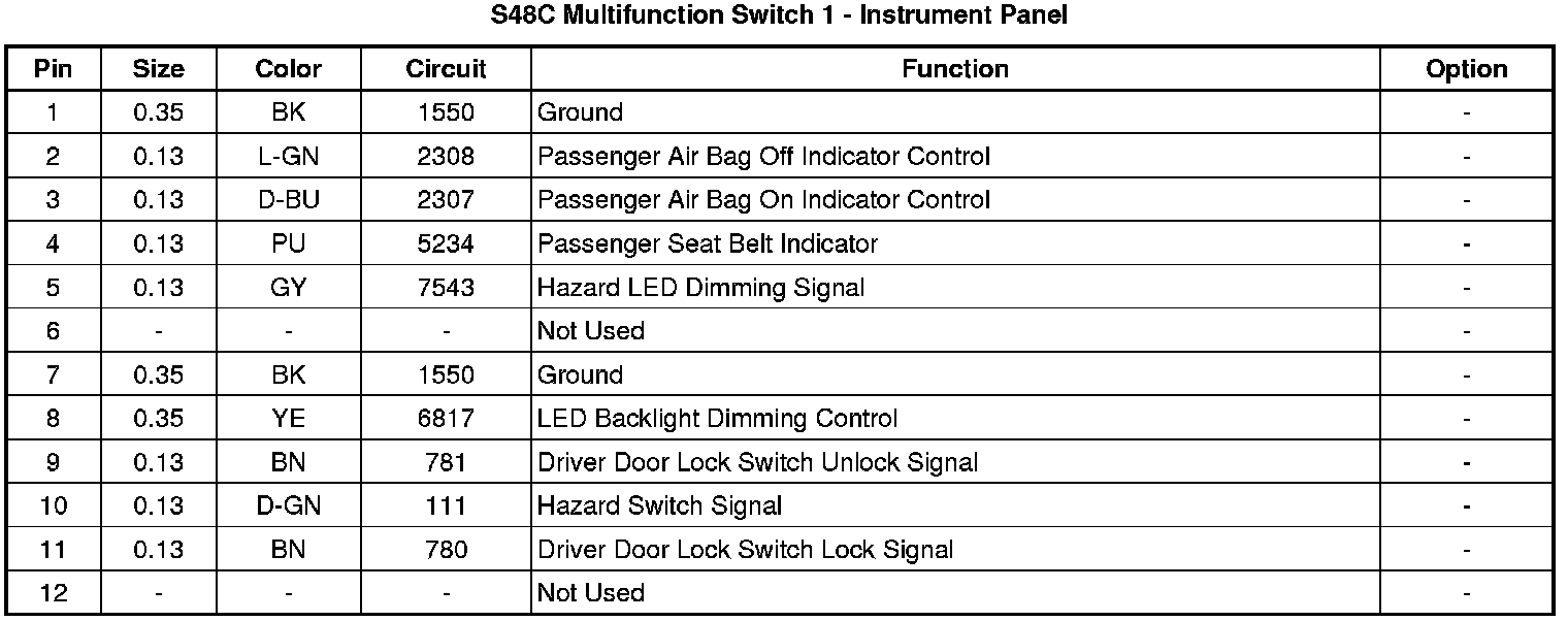 S48C Multifunction Switch 1 - Instrument Panel