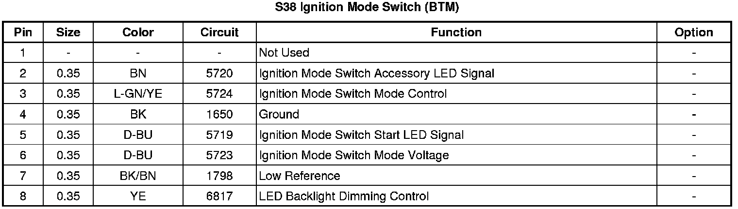 S38 Ignition Mode Switch (BTM)