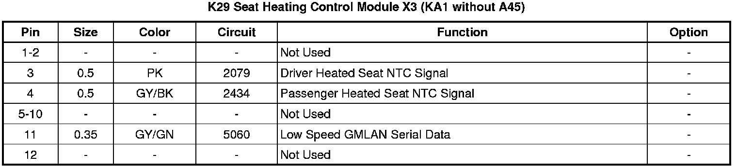 Seat Heating Control Module X3 (KA1 without A45)