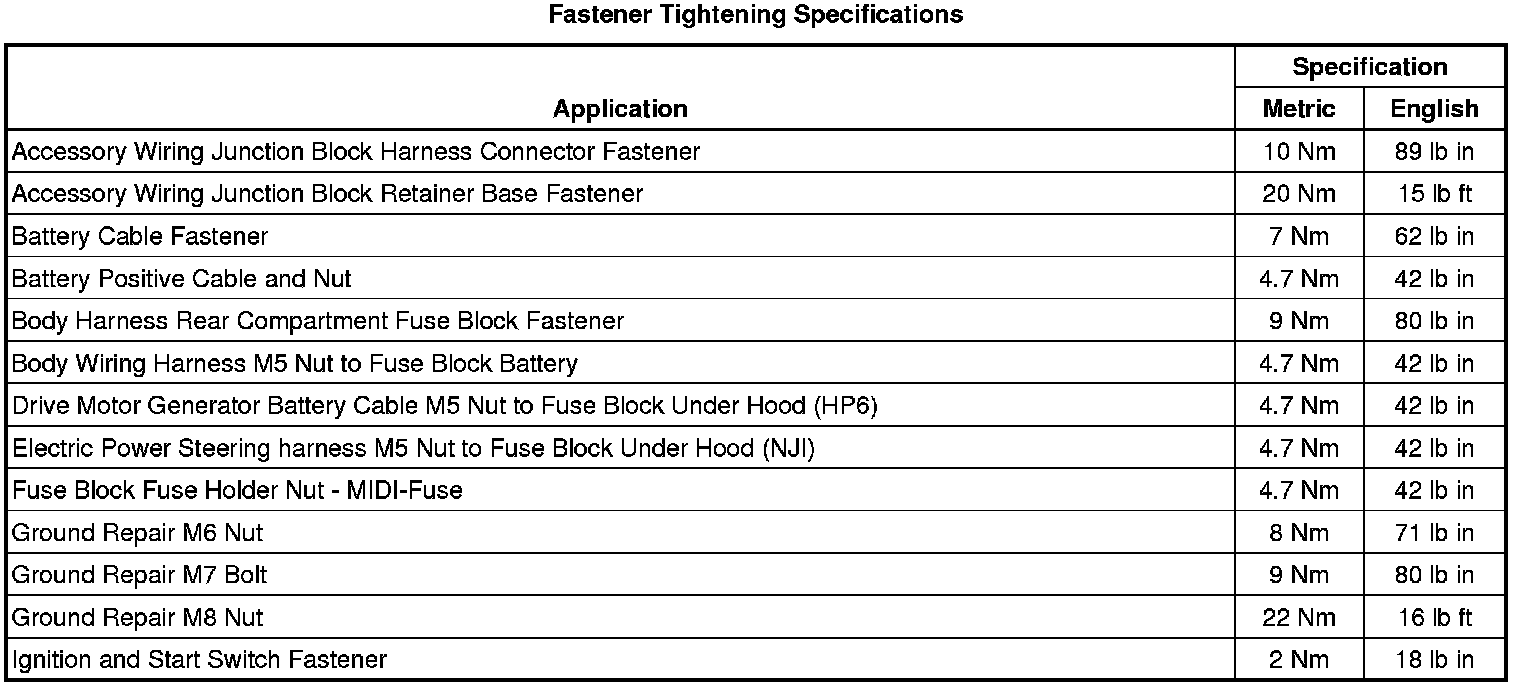 Fastener Tightening Specifications