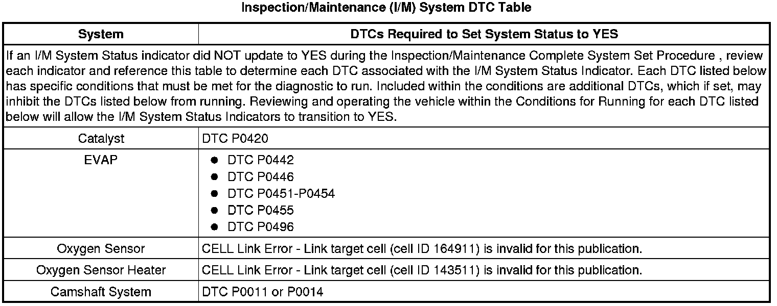 Inspection/Maintenance (I/M) System DTC Table