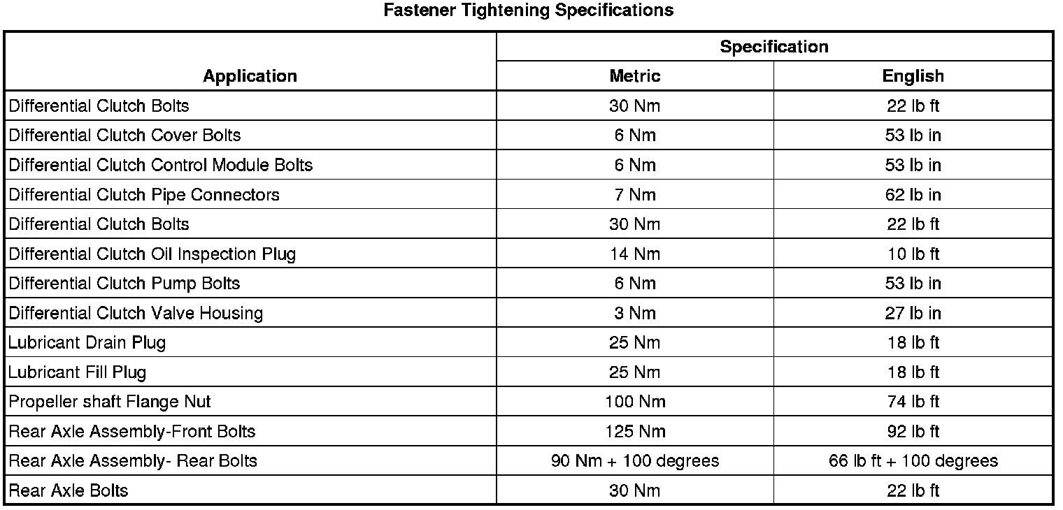 Fastener Tightening Specifications