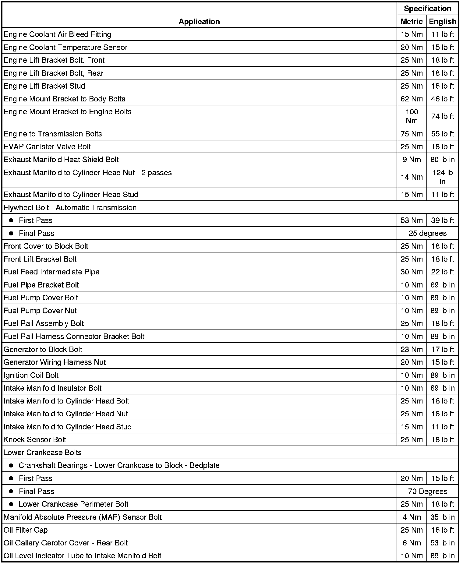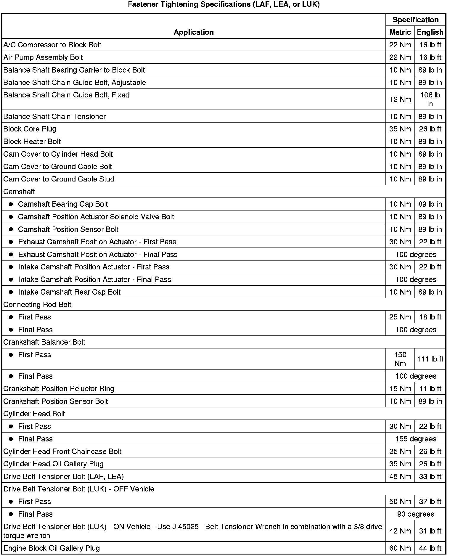 Fastener Tightening Specifications (LAF, LEA, or LUK)