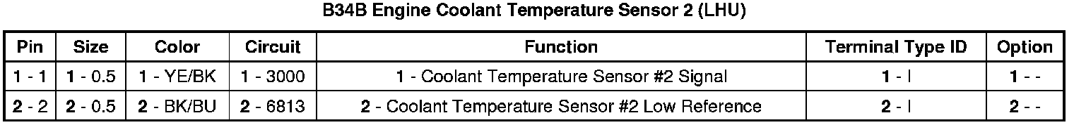 B34B Engine Coolant Temperature Sensor 2 (LHU)