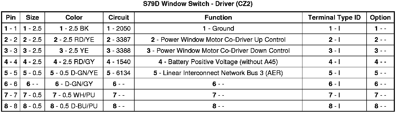 S79D Window Switch - Driver (CZ2)