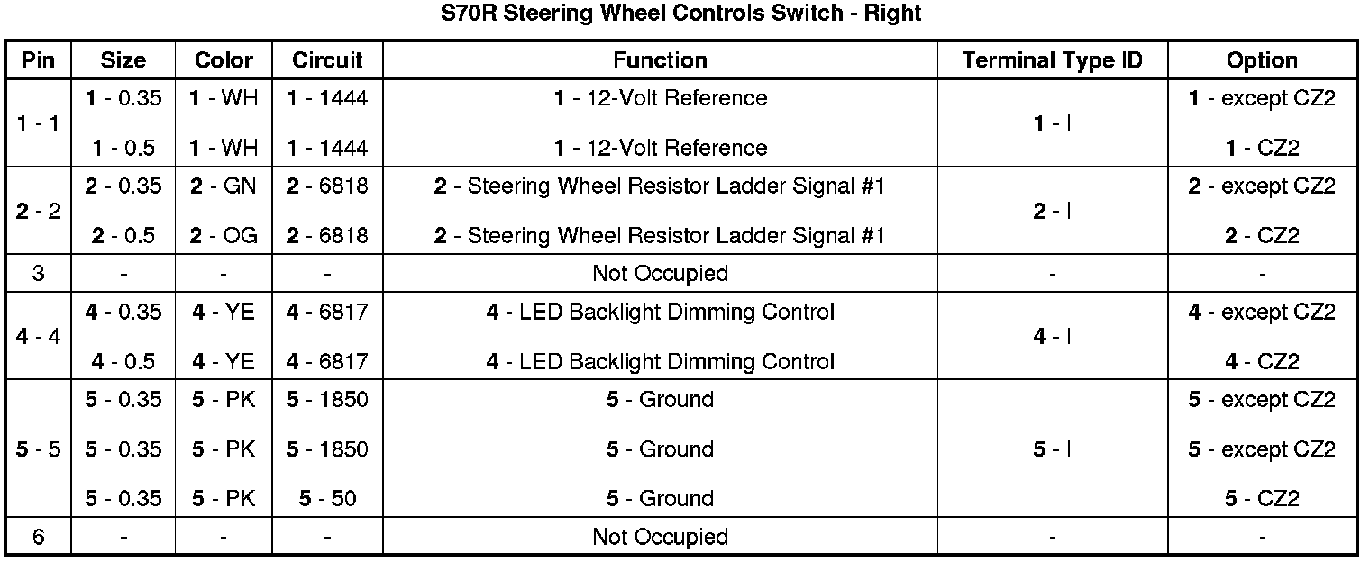 S70R Steering Wheel Controls Switch - Right