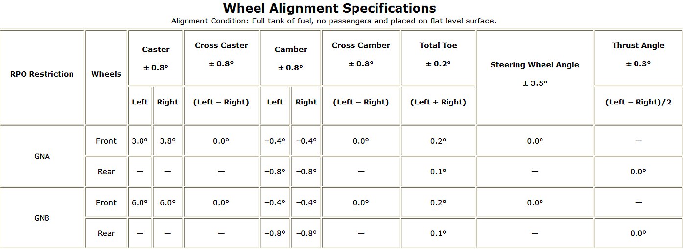 Wheel Alignment Specifications