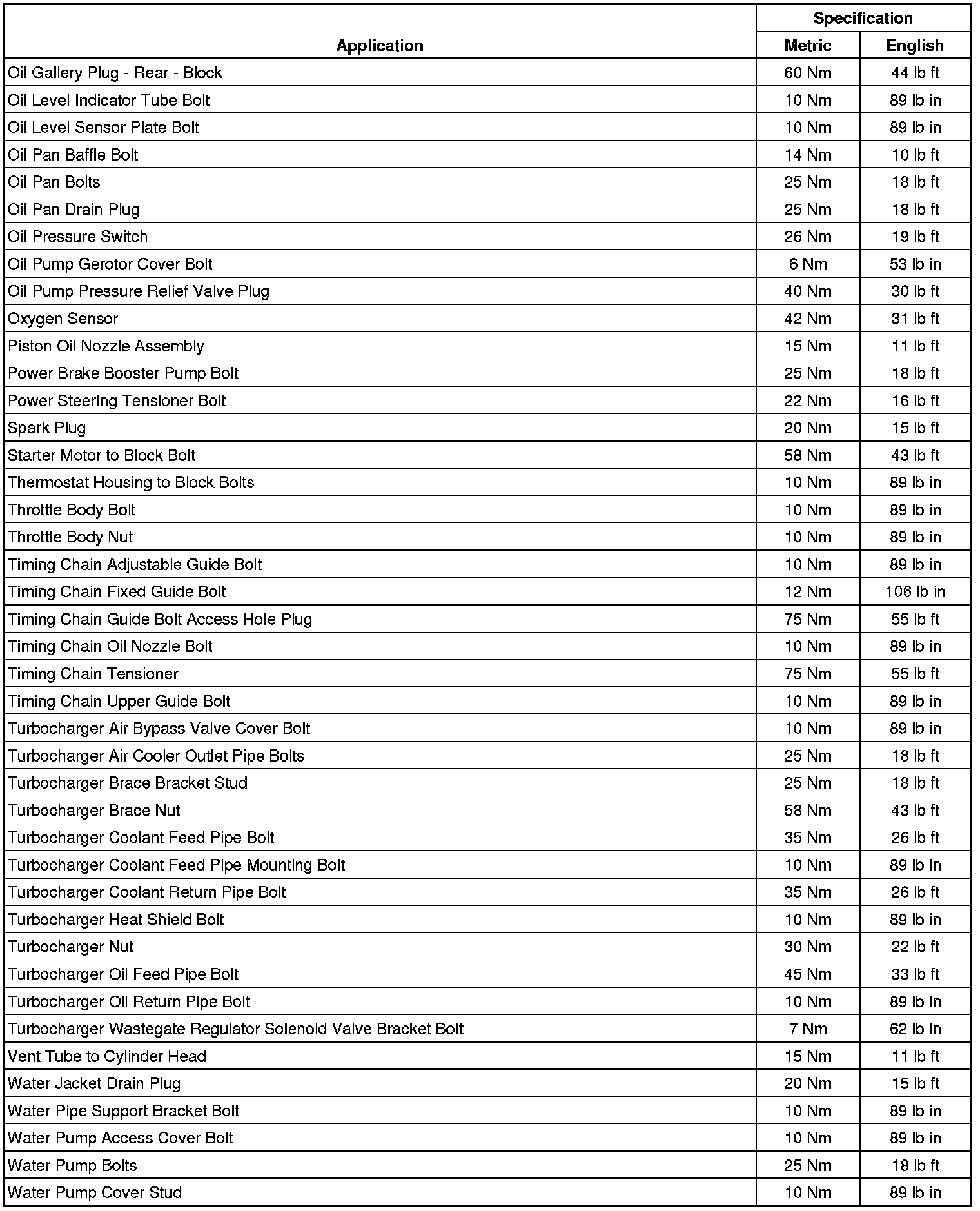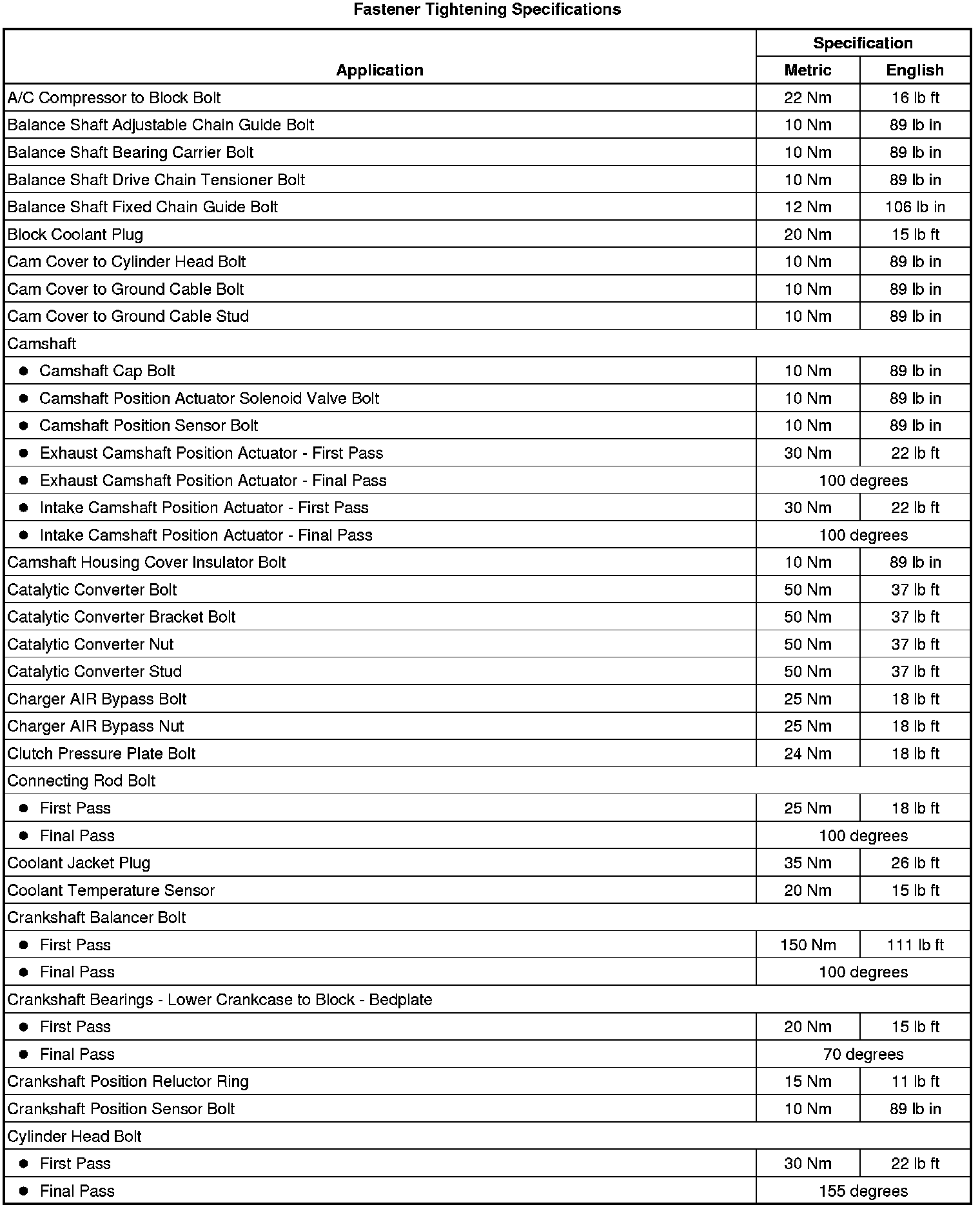 Fastener Tightening Specifications