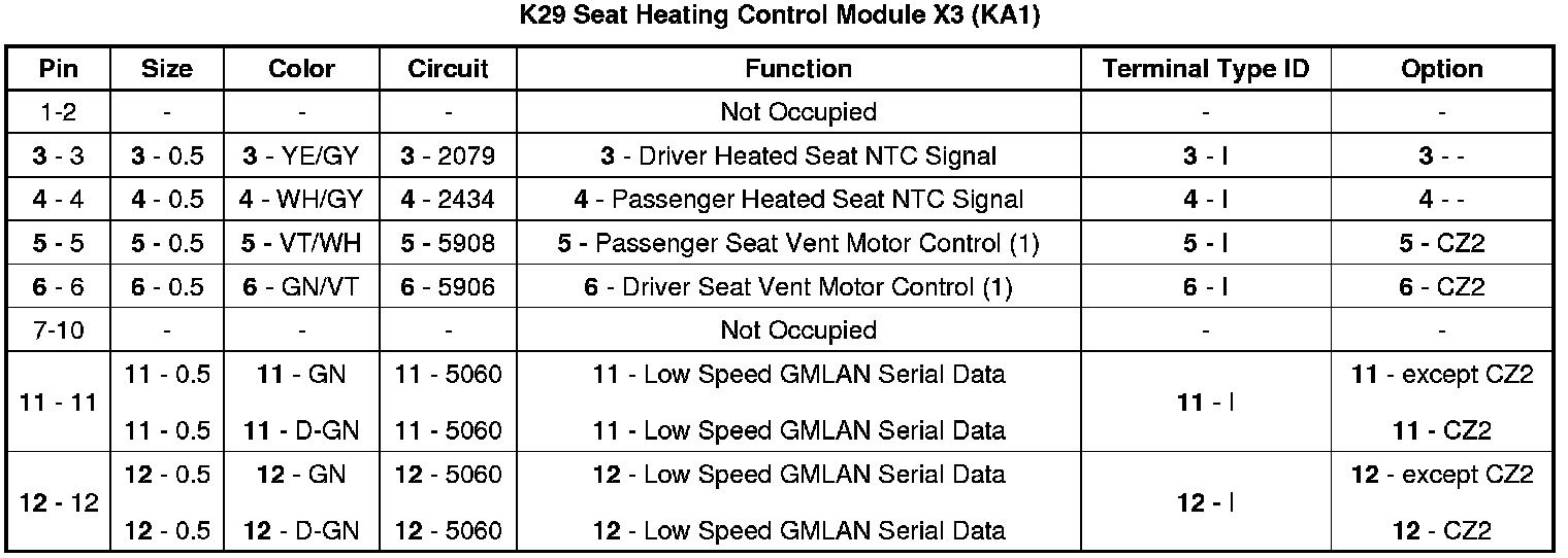 Seat Heating Control Module X3 (KA1)