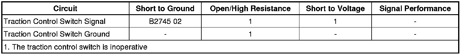 The body control module monitors the signal circuit from the traction control switch. When the traction control switch is pressed once, the body control module sends a serial data message to the electronic brake control module to disable the traction control system. The electronic brake control module will request the instrument cluster via serial data to turn the traction control off indicator ON to notify the driver of the deactivation.