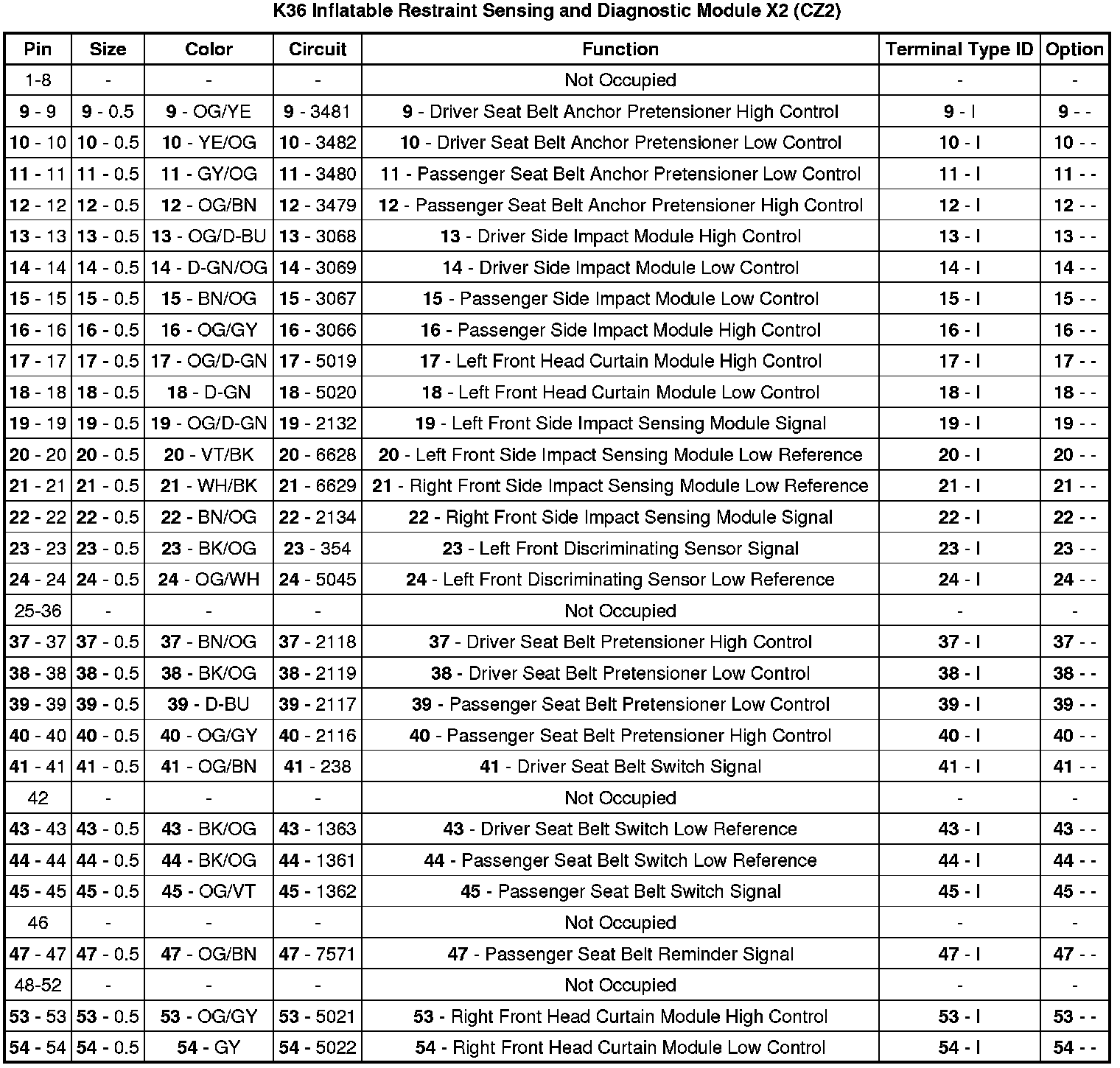 K36 Inflatable Restraint Sensing and Diagnostic Module X2 (CZ2)