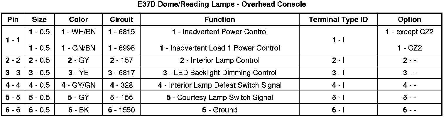 E37D Dome/Reading Lamps - Overhead Console