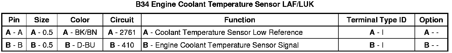 B34 Engine Coolant Temperature Sensor LAF/LUK
