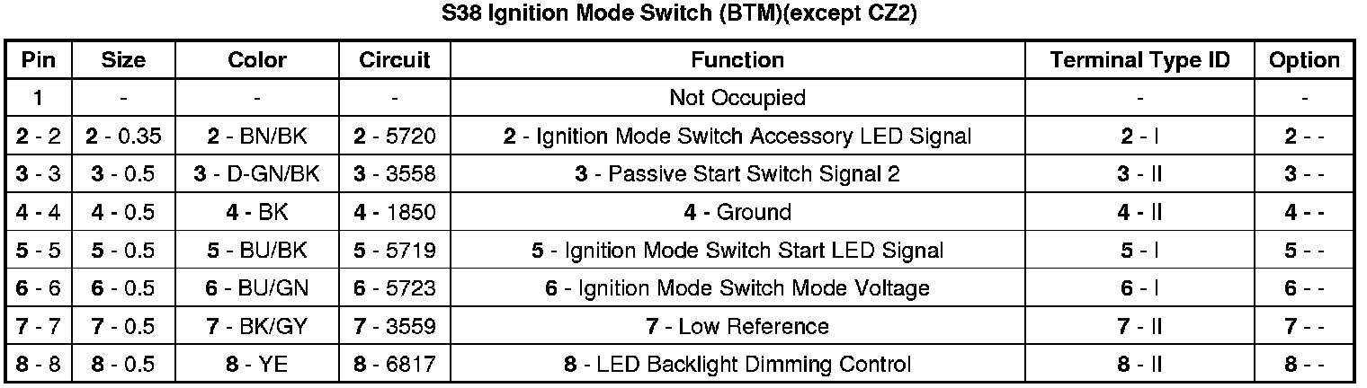 S38 Ignition Mode Switch (BTM)(except CZ2)