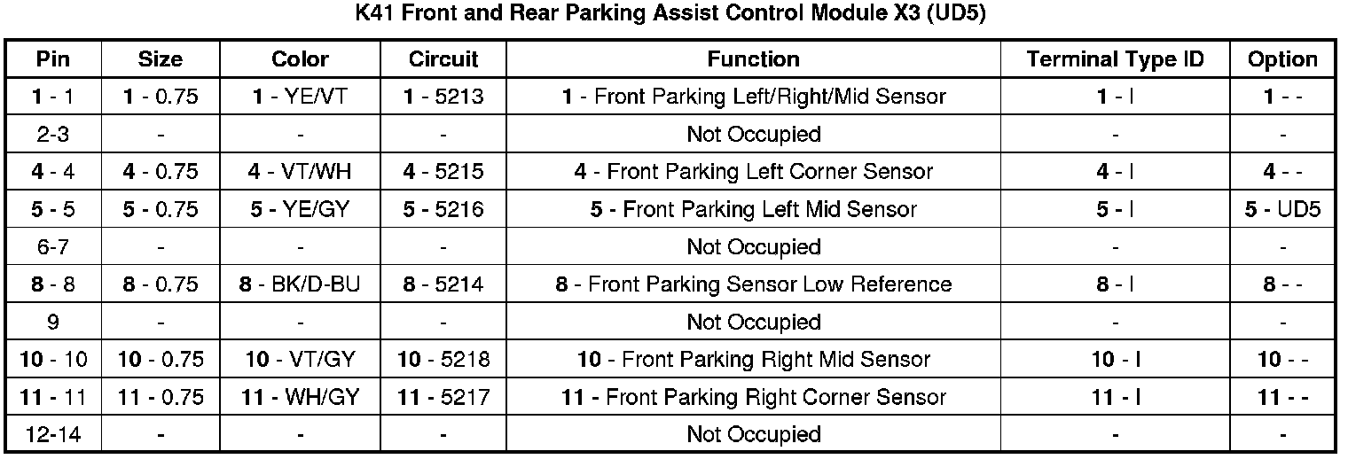 Front and Rear Parking Assist Control Module X3 (UD5)