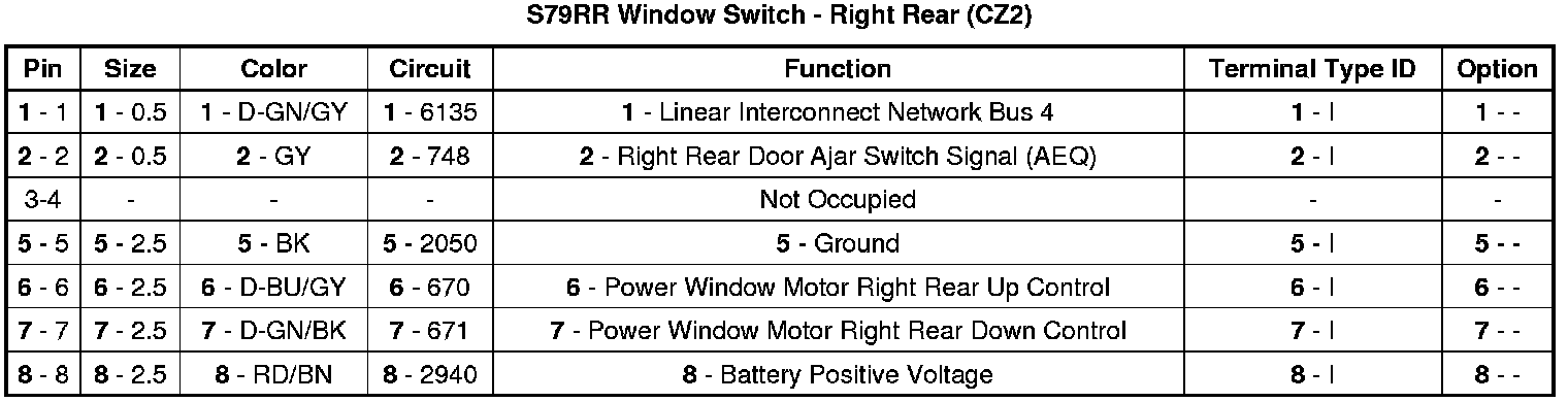 S79RR Window Switch - Right Rear (CZ2)