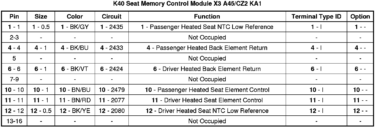 K40 Seat Memory