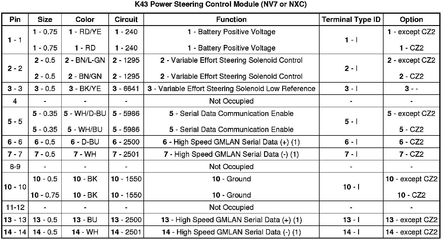 Power Steering Control Module (NV7 or NXC)