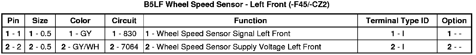 Wheel Speed Sensor - Left Front (-F45/-CZ2)
