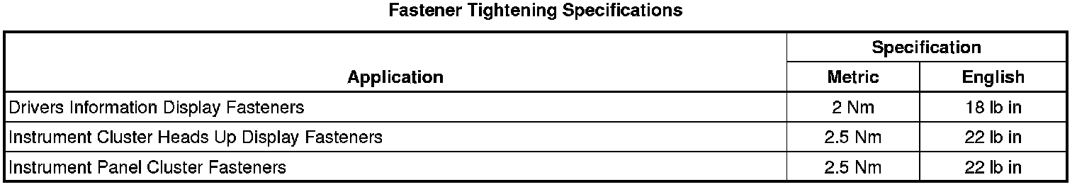 Instrument Panel, Gauges and Warning Indicators: Specifications