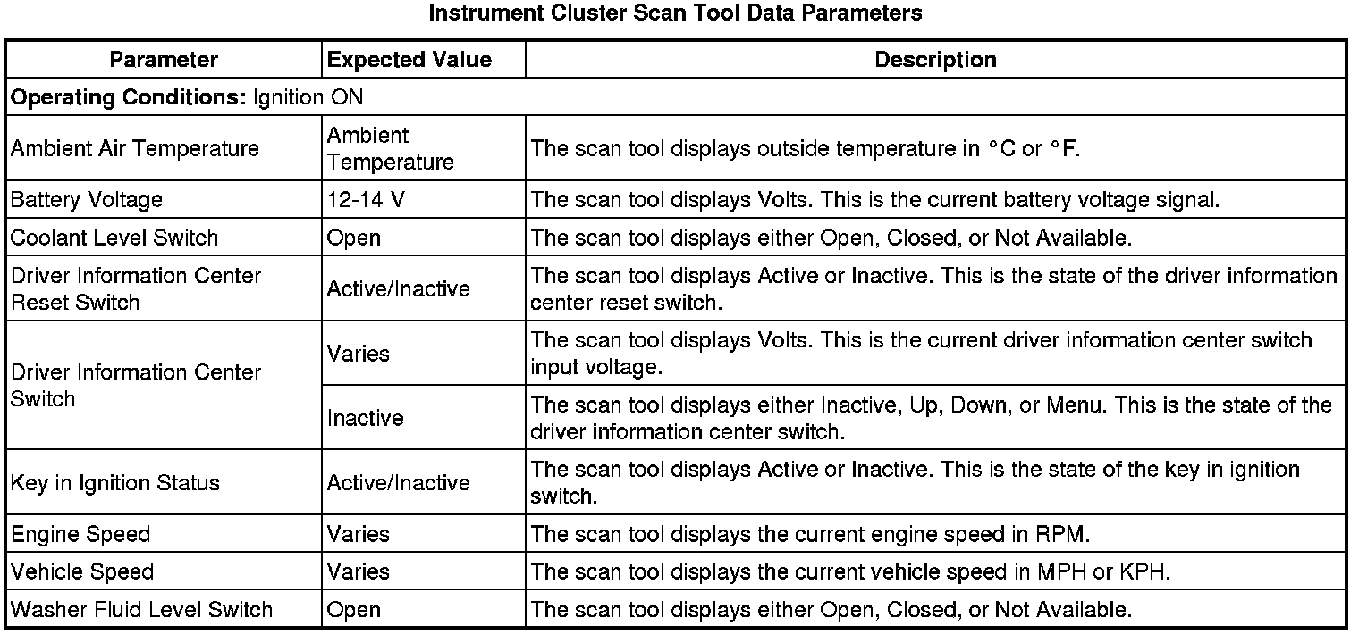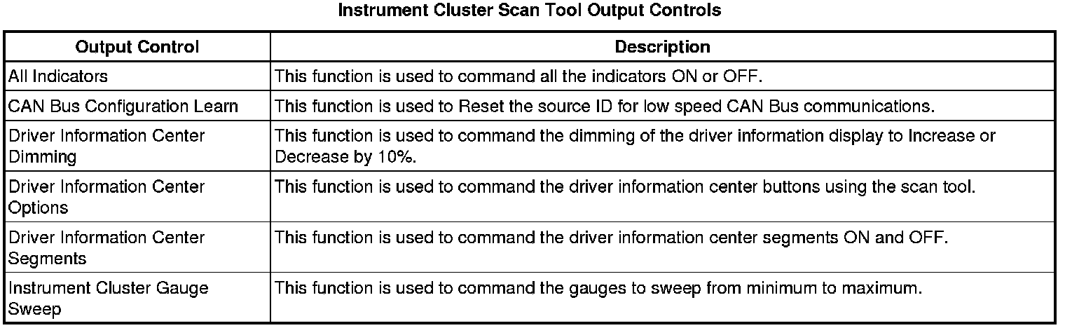 Instrument Cluster Scan Tool Information