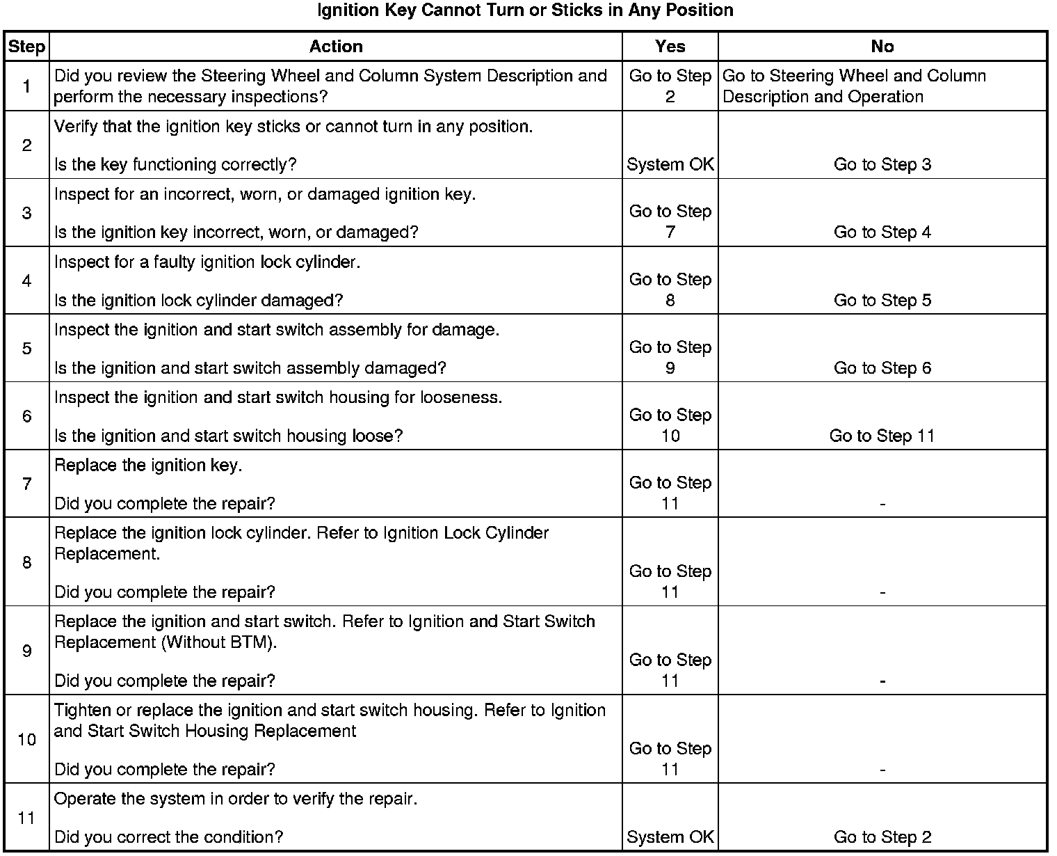 Ignition Key Cannot Turn or Sticks in Any Position