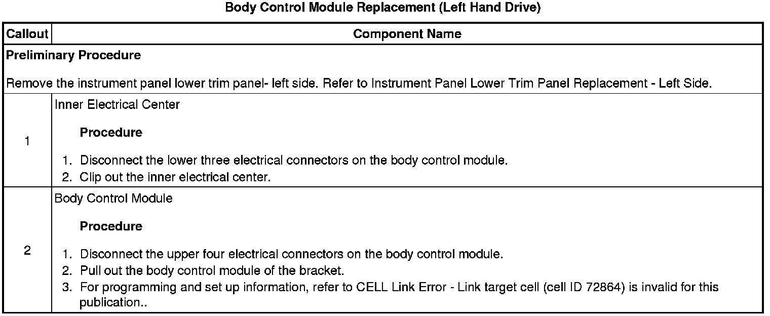 Body Control Module Replacement (Left Hand Drive)