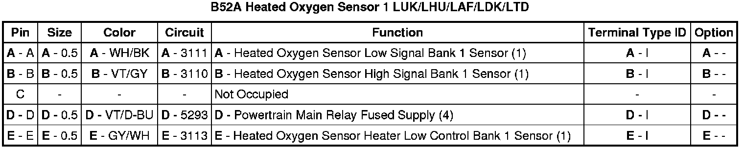 B52A Heated Oxygen Sensor 1 LUK/LHU/LAF/LDK/LTD