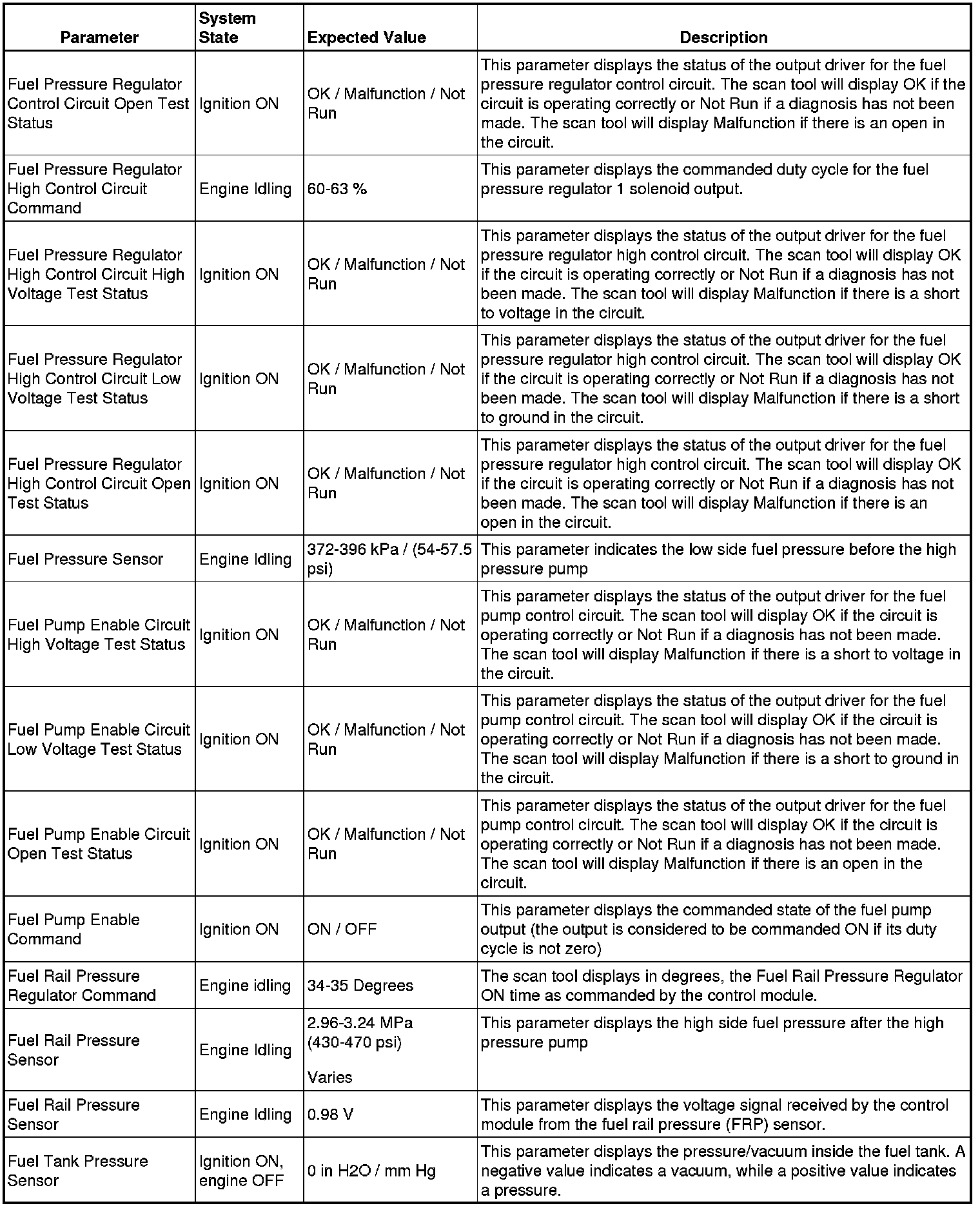 The scan tool values from a properly running engine may be used for comparison with the engine you are diagnosing. The Engine Scan Tool Data List represents values that would be seen on a normally running engine.