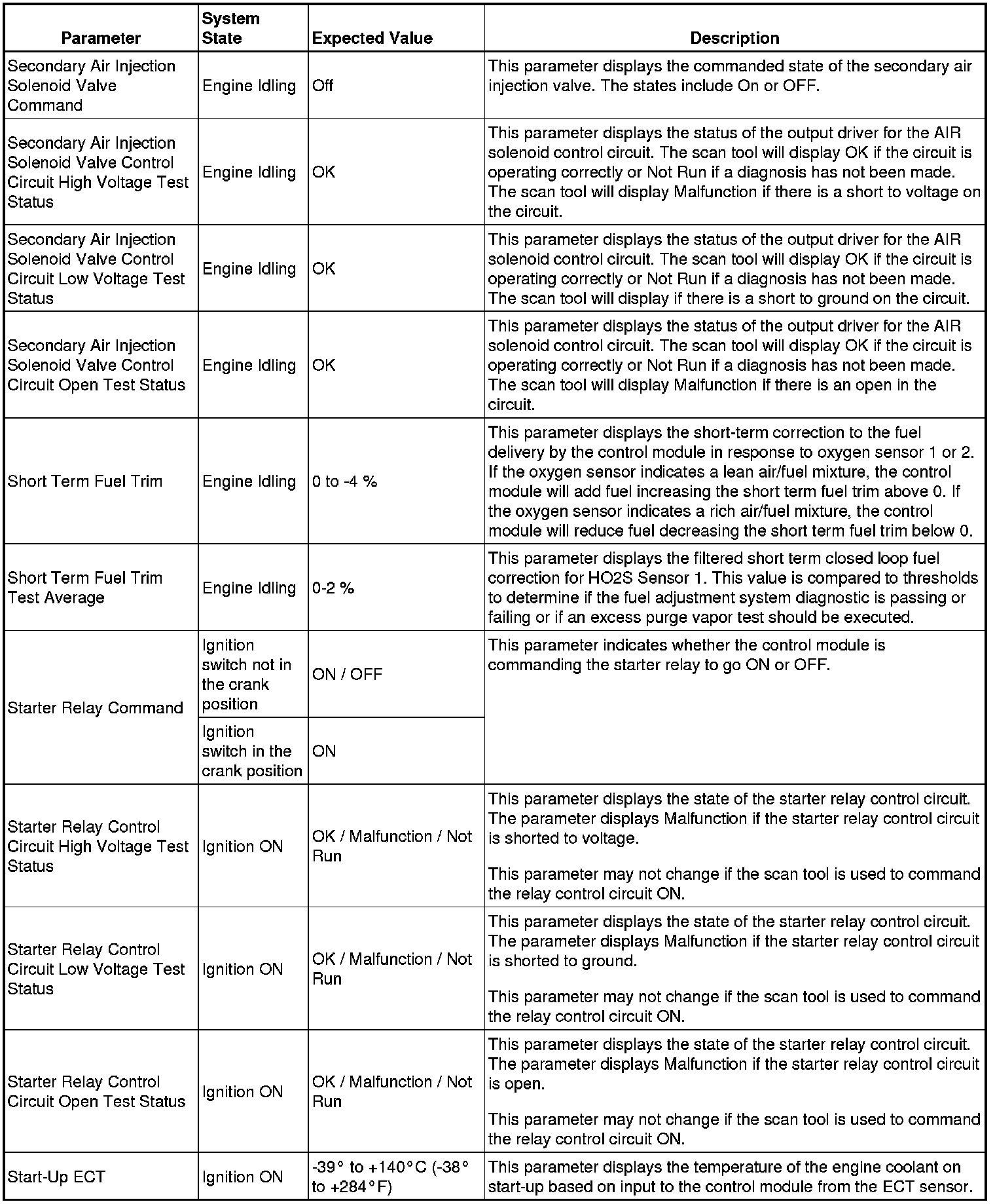 The Engine Control Module Scan Tool Data List contains all engine-related parameters that are available on the scan tool. The list is arranged in alphabetical order. A given parameter may appear in any one of the data lists, and in some cases may appear more than once, or in more than one data list in order to group certain related parameters together.