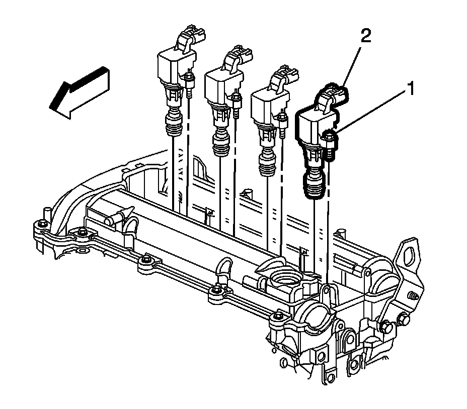 2. Install the ignition coil bolt(s) (1) and tighten to 10 Nm (89 lb in).