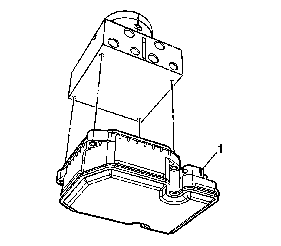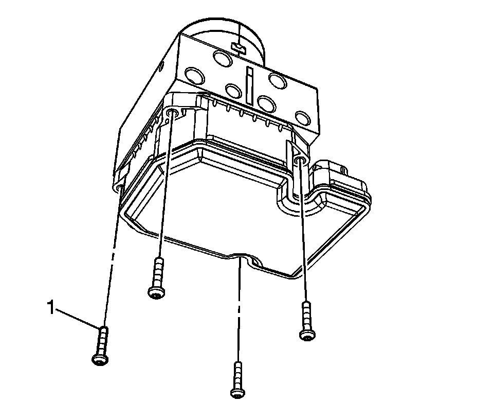 2. Remove the electronic brake control module (EBCM) bolts (1),